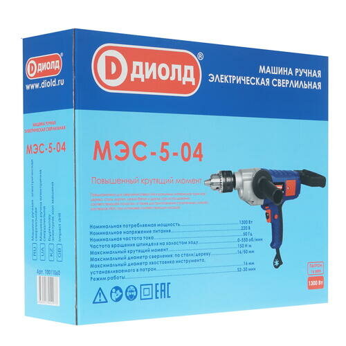 Дрель безударная сетевая диолд МЭС-5-04 (ключевой патрон), реверс, 150 Нм, 1300 Вт, 0-550 об/мин, патрон 3-16 мм