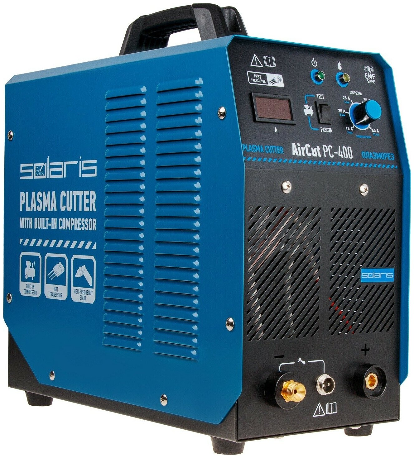 Плазморез Solaris AirCut PC-400 (220 В; 15-40 А; Высоковольтный поджиг; встроен. компрессор; термозащита; плавный запуск)