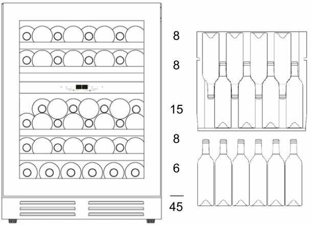 | Емкость винного шкафа (в бутылках) | 45 |
