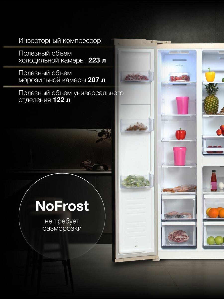 | Морозильная камера | Side by Side (сбоку) |
