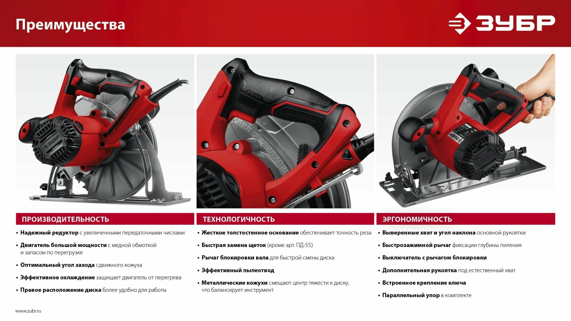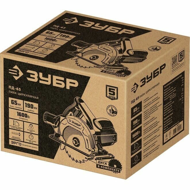 Дисковая пила ЗУБР ПДП-65, 1600 Вт