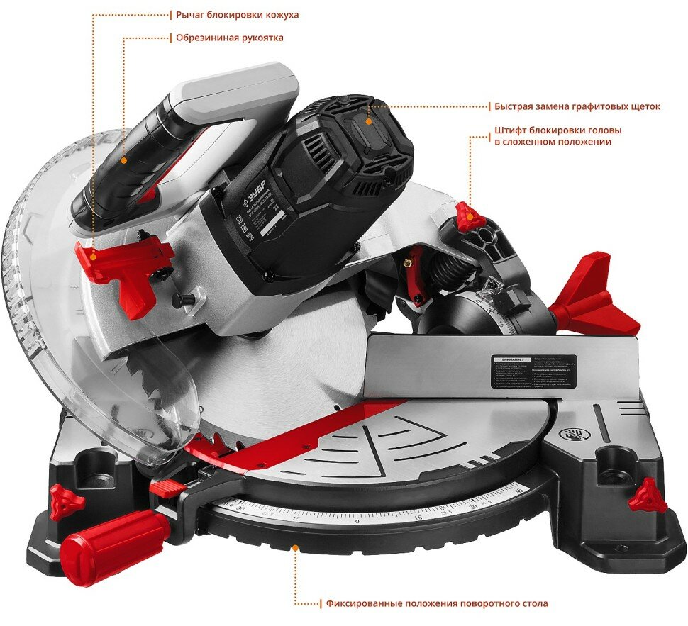Пила торцовочная Зубр ЗПТ-255-1800 ЛМ2, 1600 Вт, 5000 об/мин