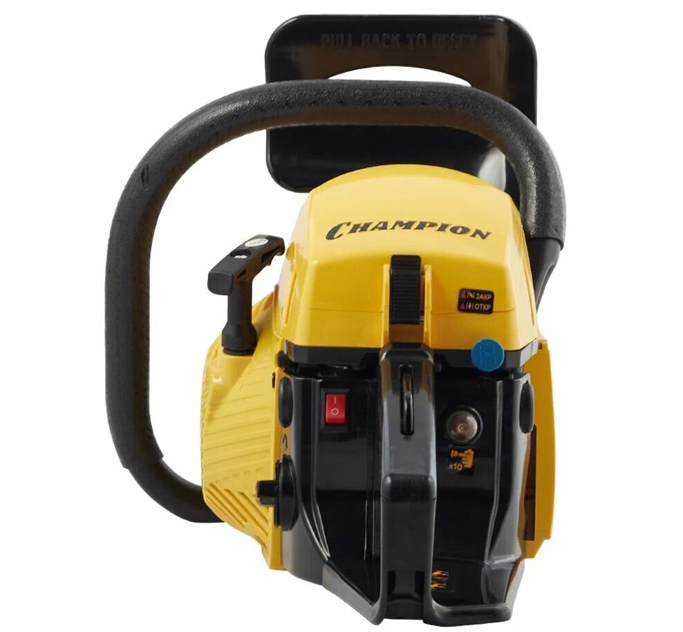 | Отзыв: | Легендарная бензопила Stihl MS 180 после долгих лет службы приказала долго жить, ремонт не рентабелен, новая стоит 23-27 тыс. - не хотелось закладывать серьезный бюджет на бензопилу для не частого использования. Поизучав предложения на рынке понял что вариантов немного, либо совсем дешёвые китайцы объемом двигателя 45-52 кубика, попробовал попилить такой бензопилой у соседа не понравилось - ОЧЕНЬ тяжёлая, топливо расходует ну очень много, после Штиля не привычно. В магазине пощупал Чемпиона , на вес неплохо, аккуратно собрана, бренд известный, отзывы хорошие. Ну и самое главное цена не заоблачная. Производитель устраивает акции в течение года - бонусом вторая пильная цепь, масло и свеча, очень приятный и существенный бонус. Попилил пока немного, но заводится легко, топлива потребляет немного , лёгкая, удобная. По зч всё нормально, в крайнем случае под заказ, да и стоимость приемлимая, по сравнению с брендами.