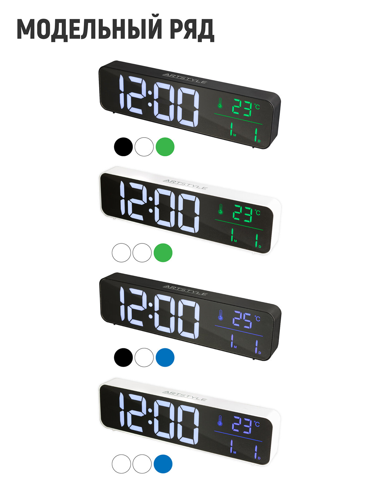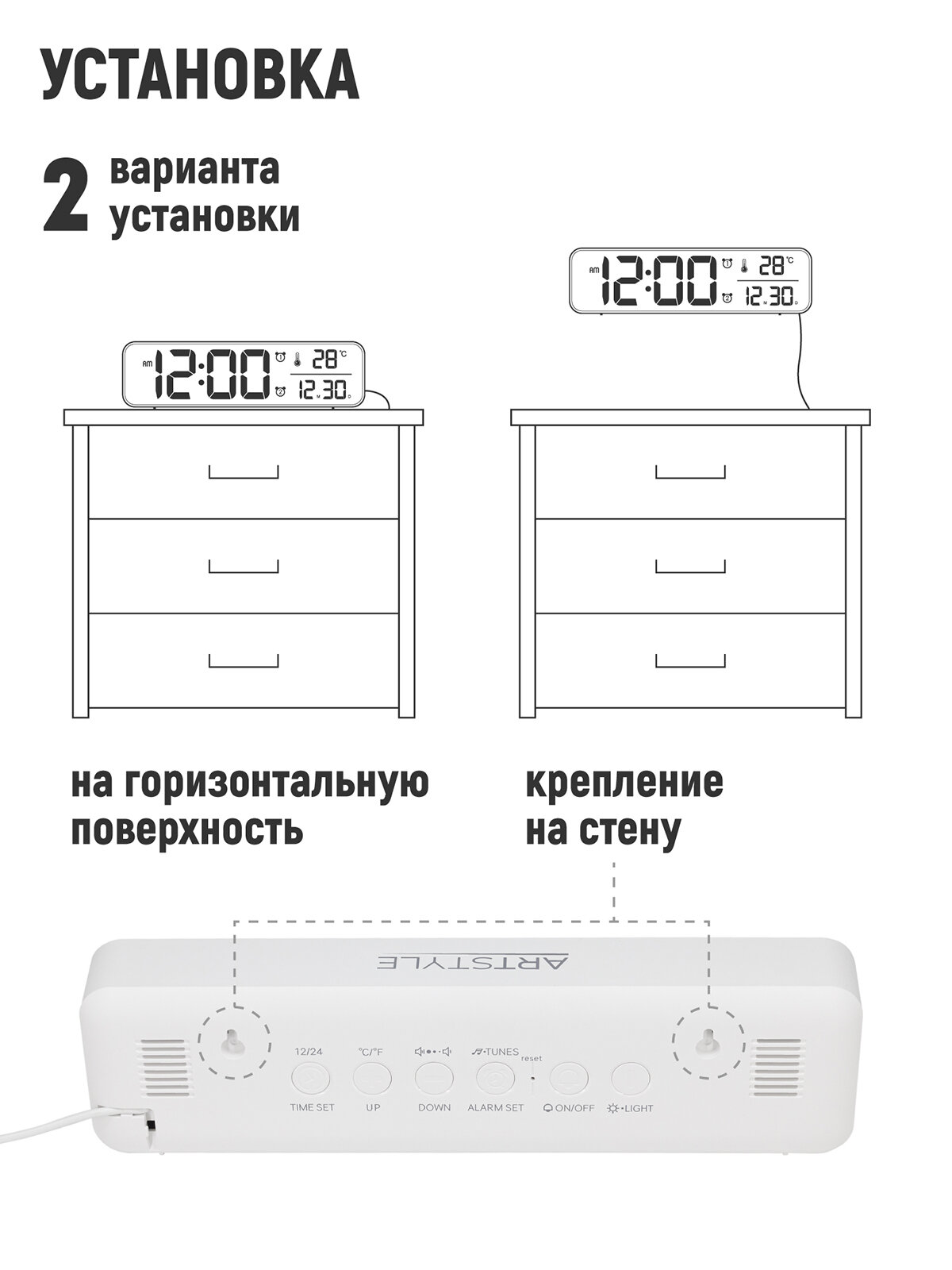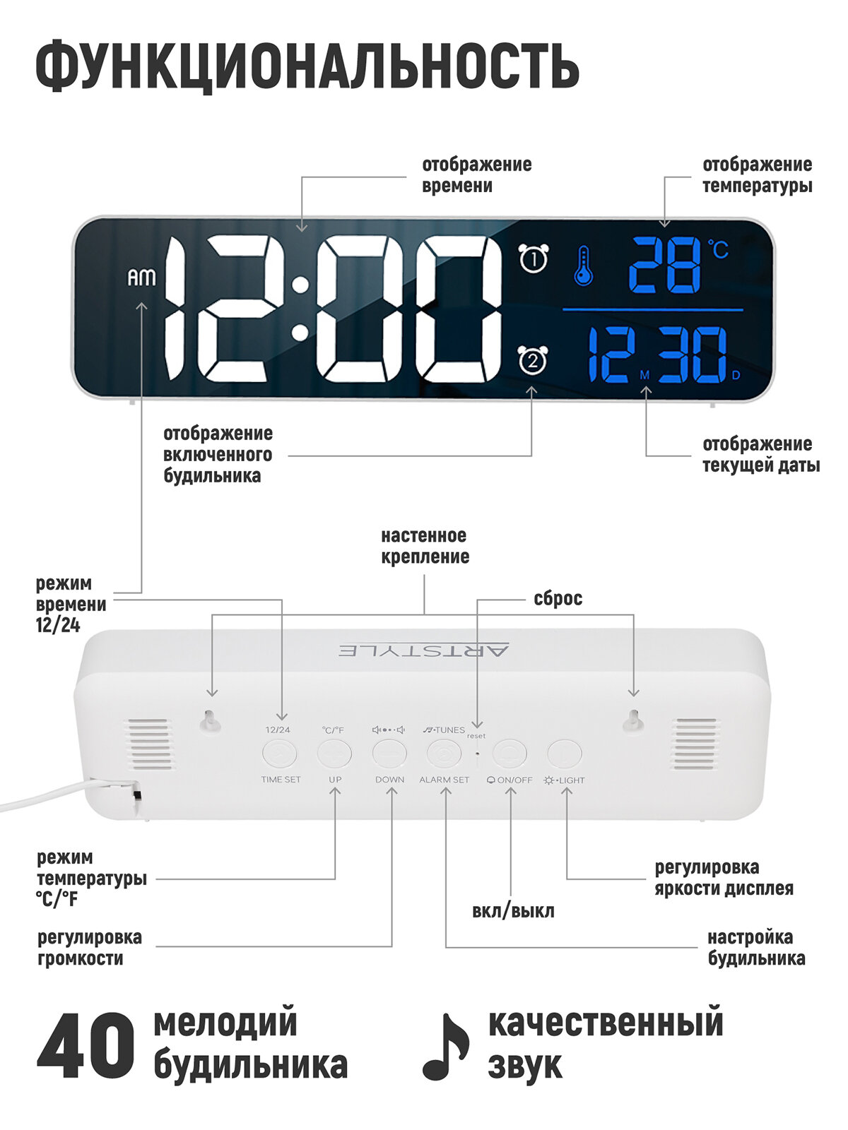 Часы электронные настольные / настенные с будильником, ARTSTYLE, CL-W81WBL, термометром и календарем. интересное:
