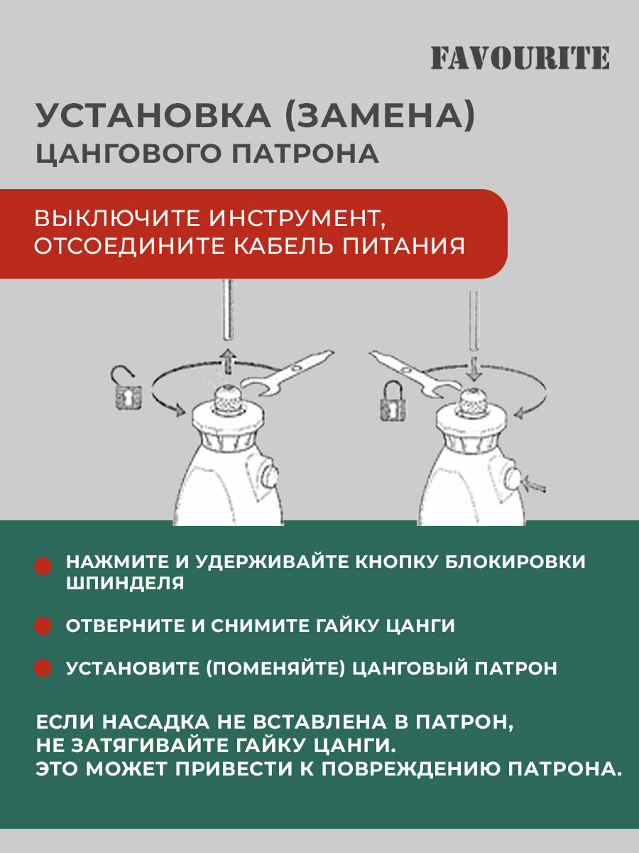 | Особенности конструкции | фиксация шпинделя, блокировка кнопки включения |