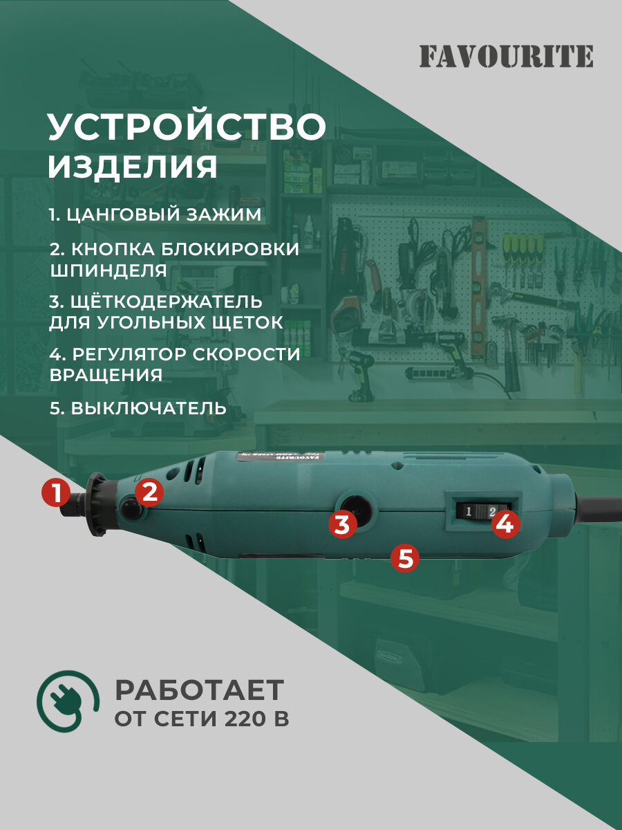 Favourite Гравер 170Вт, гибкий вал, 10000-35000об/мин, 2скорости FGM 170FS .