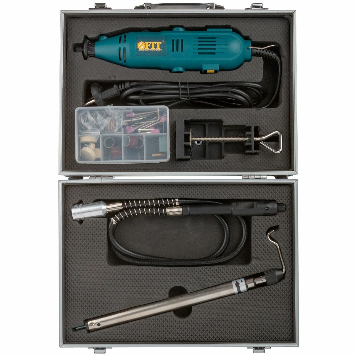 Гравировальная машина 135 Вт, 10000-32000 об/мин, 2,4-3,2 мм, набор насадок, алюминиевый кейс, FIT 80592