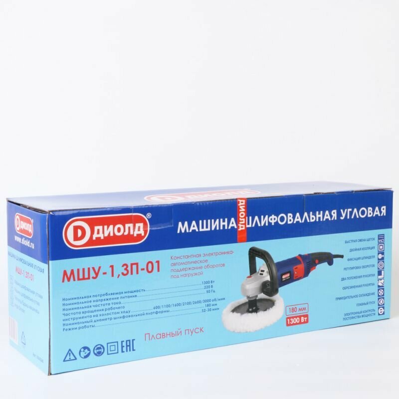 Купить Полировальная машина диолд МШУ-1,3П-01, 1300 Вт, коробка, система стабилизации оборотов