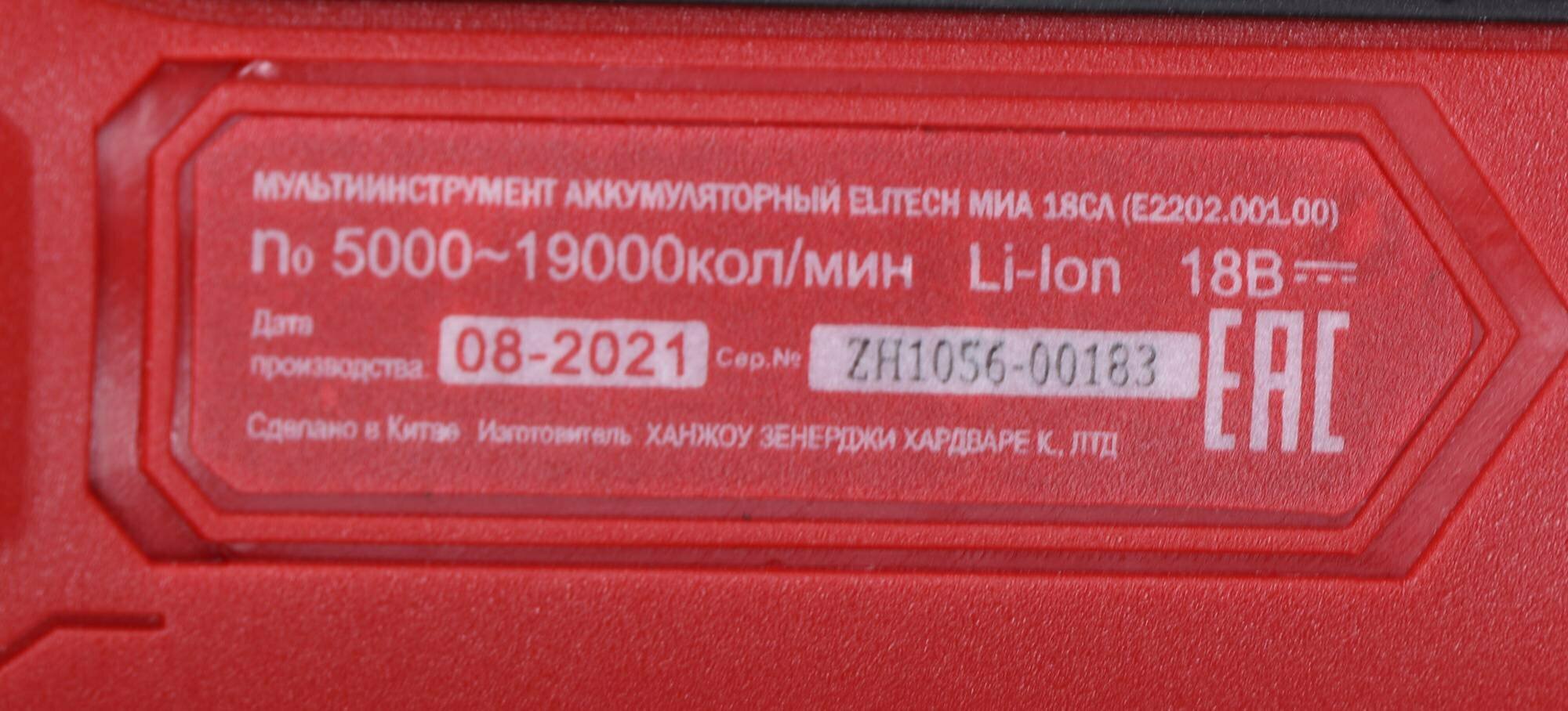 Многофункциональный инструмент-реноватор аккумуляторный ELITECH МИА 18СЛ (Е2202.001.02)