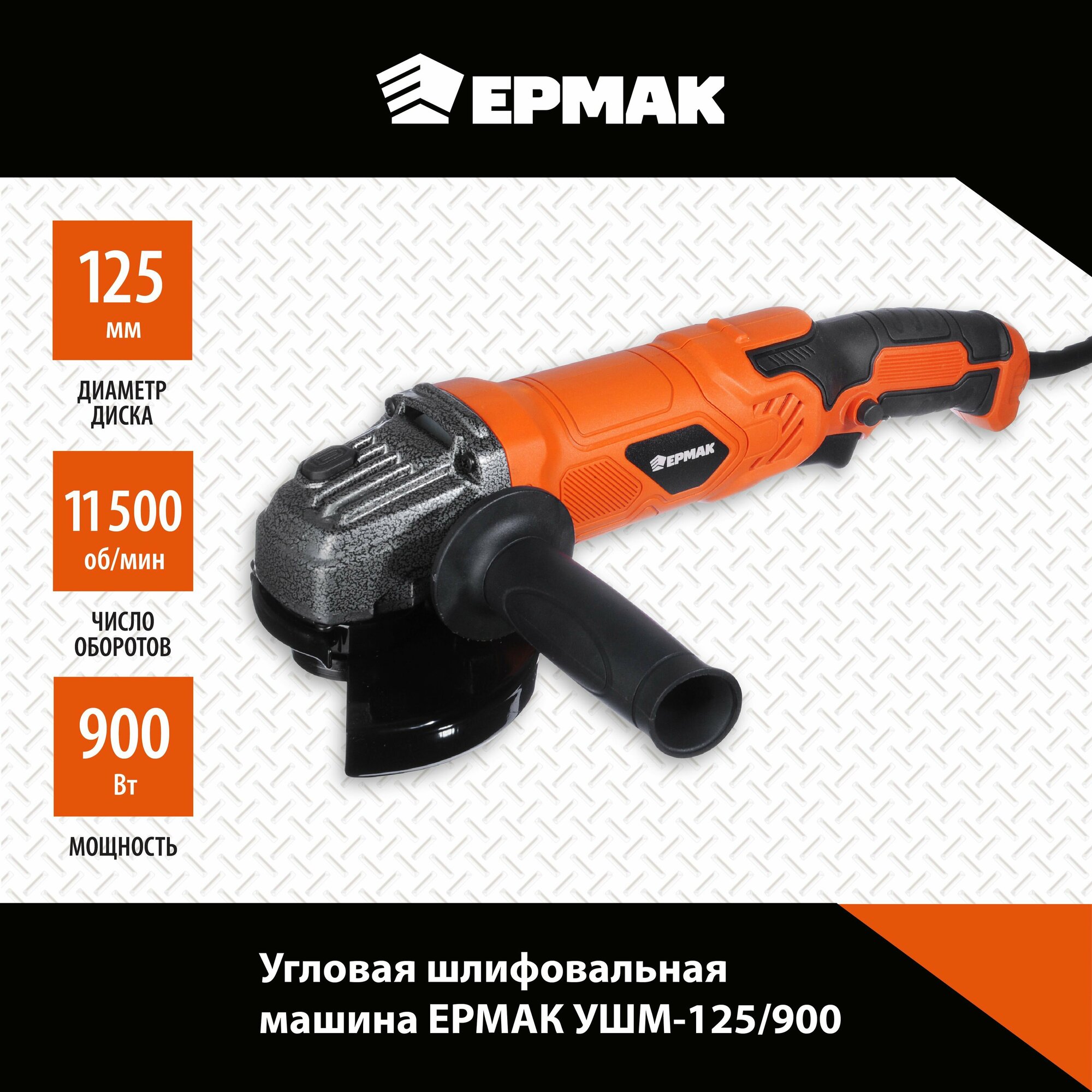 Ермак Машина шлифовальная угловая УШМ-125/900. 900Вт, 125 мм, 11500 об/мин. рег. з.кожуха б/кл