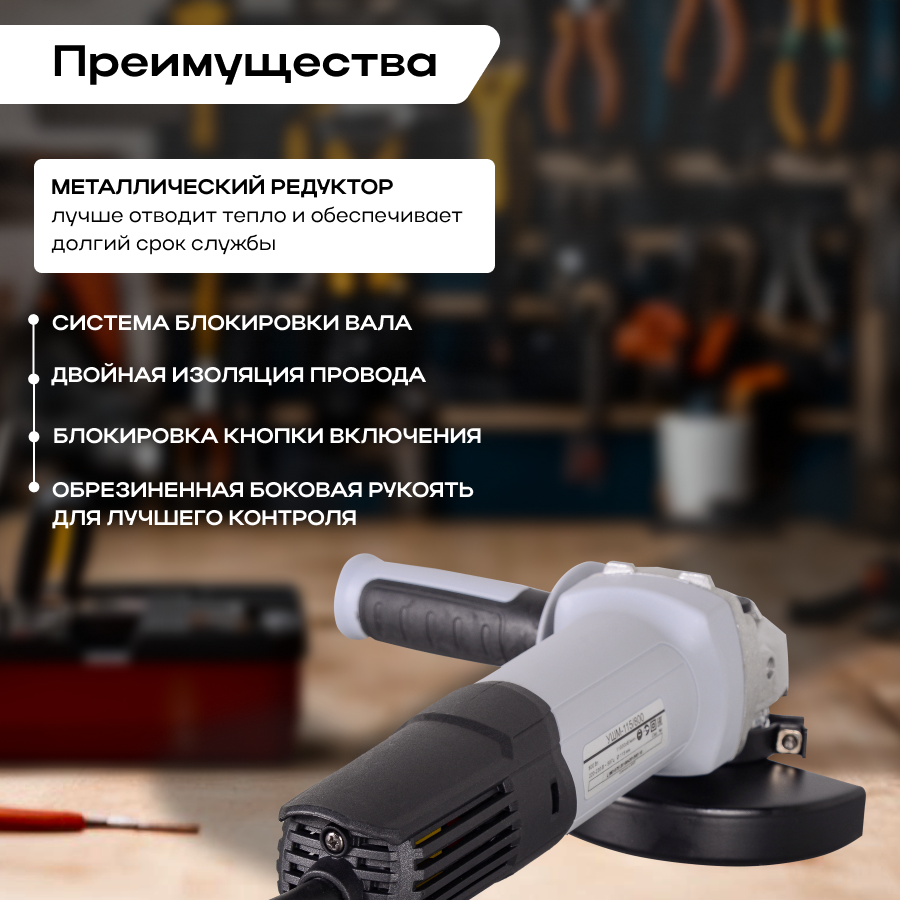 Угловая шлифмашина УШМ-115/800, 800 Вт, 115х22.2 мм, 11000 об/мин, М14