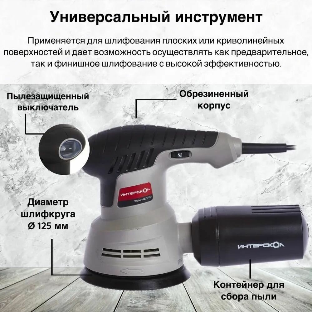 ИНТЕРСКОЛ ЭШМ-125/270Э шлифмашина эксцентриковая 125мм 270Вт / ИНТЕРСКОЛ ЭШМ-125/270Э шлифовальная машина эксцентриковая орбитальная 125мм 270Вт