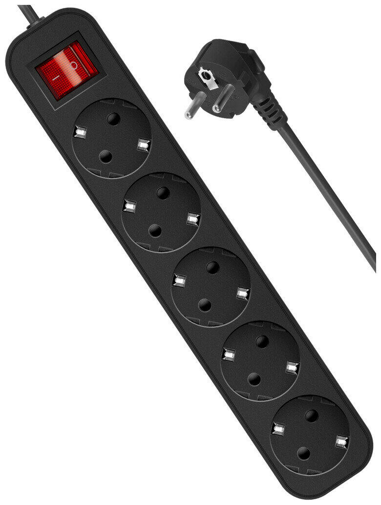 Удлинитель с выключателем Defender S 1.8 м, 5 розеток, черный