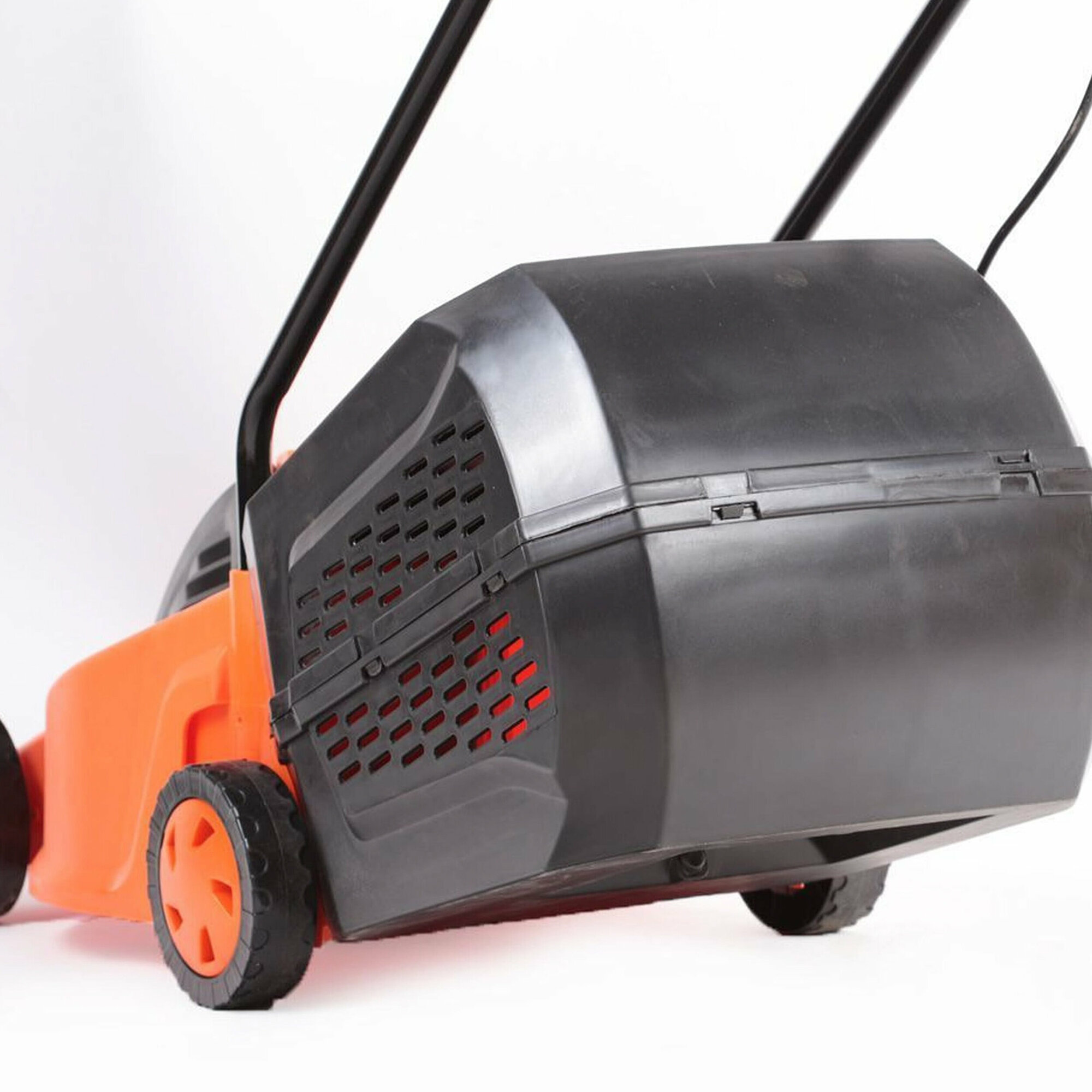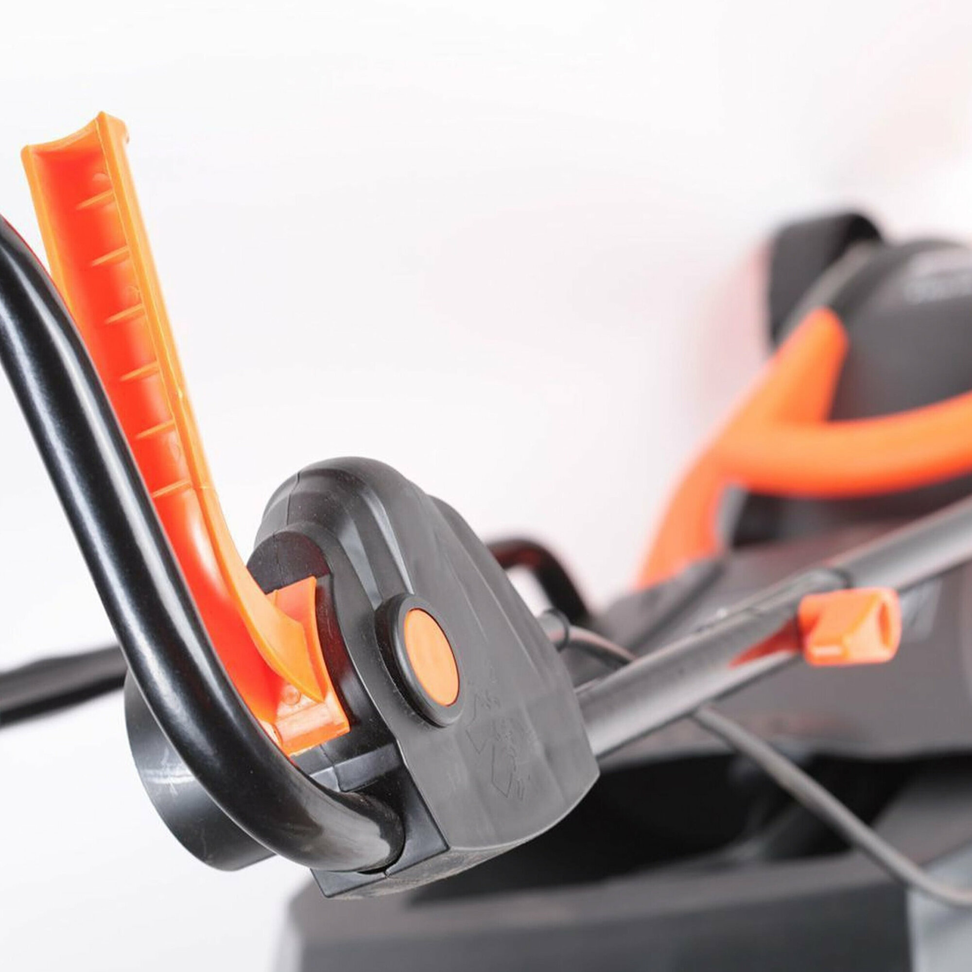 Ручка не регулируется, но мой рост 163 - высота ручки мне подходит Травосборник наполняется при покосе примерно 20 м2 газона Странный, на иой взгляд штекер для включения |