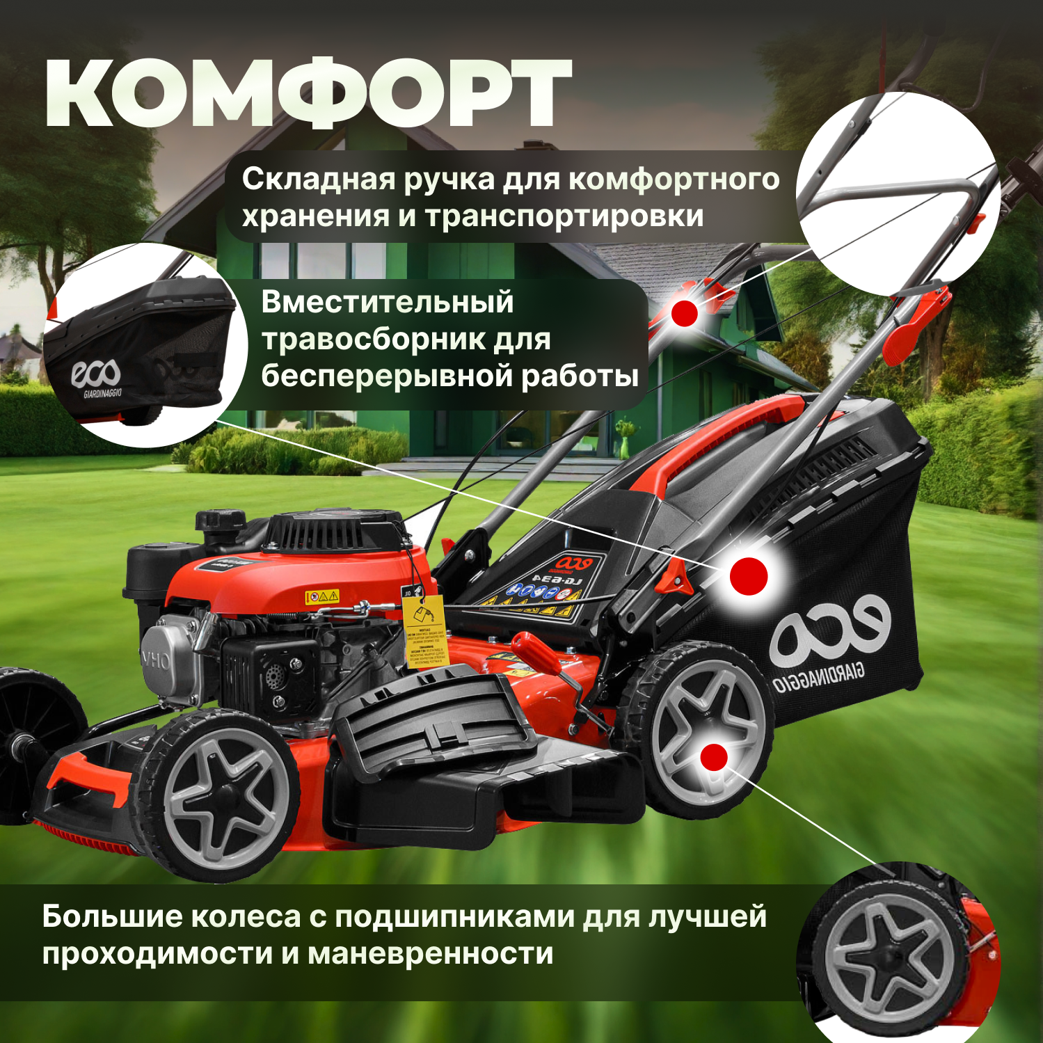Купить Газонокосилка бензиновая ECO LG-634 с мульчированем самоходная, ширина обработки 46 см, травосборник 50 л