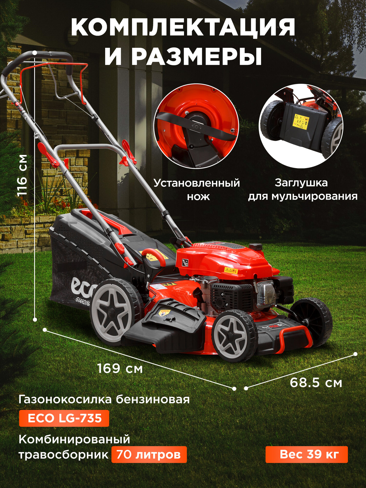 СохранитьГазонокосилка бензиновая самоходная с функцией мульчирования ECO LG-735 интересное: