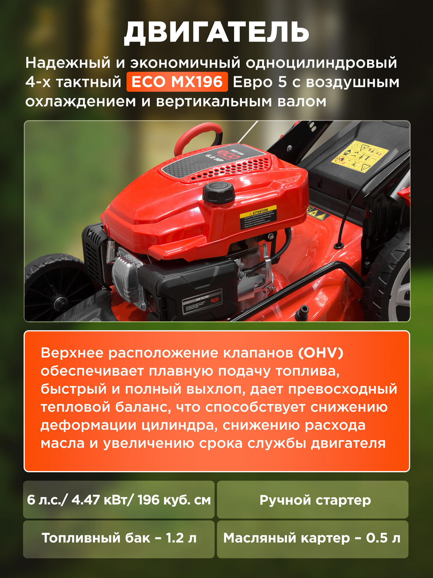 | Двигатель | бензиновый / 4х тактный |