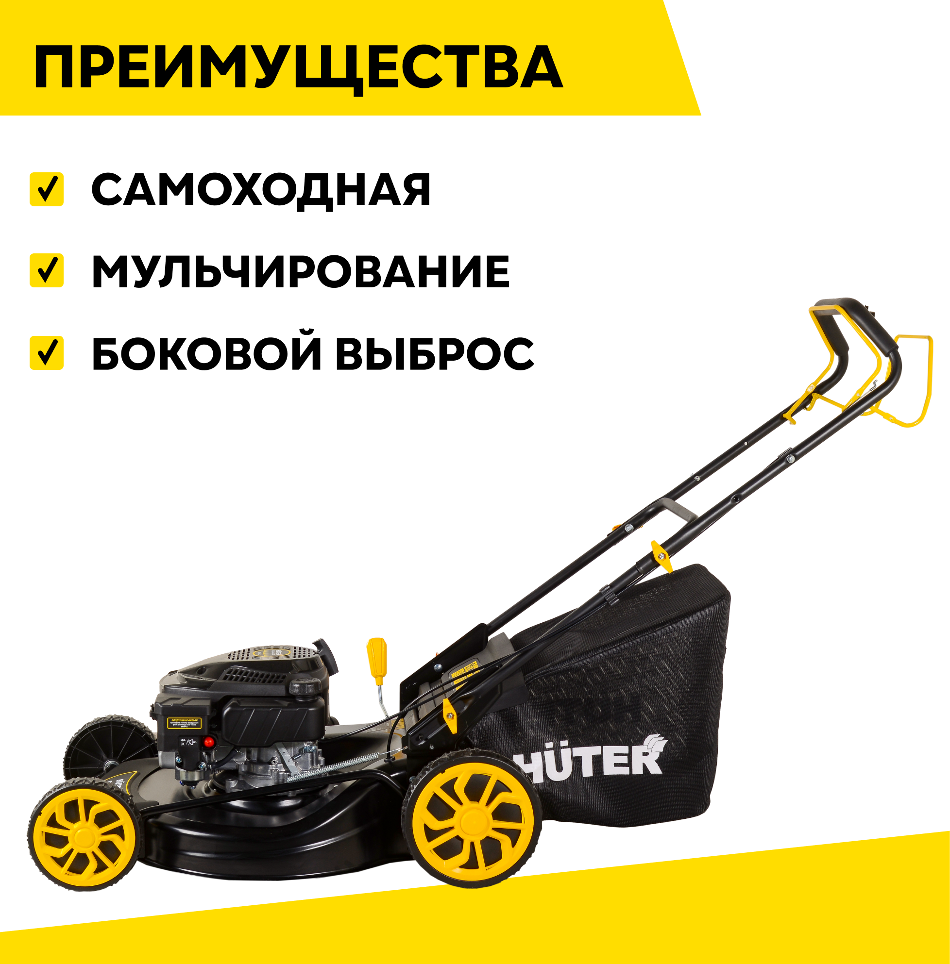 Газонокосилка бензиновая, бензогазонокосилка, 6 л.с., функция мульчирования, металлический корпус, Huter, гарантия, express store