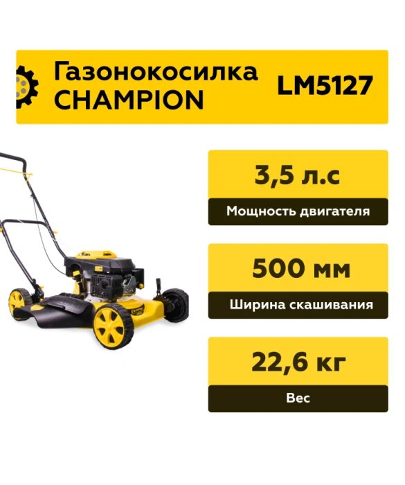 Ниже Вы можете прочитать отзывы на Бензиновая газонокосилка CHAMPION LM5127, ширина скашивания 50см, ознакомится с подробными характеристиками, посмотреть интересные обзоры и фотографии на Бензиновая газонокосилка CHAMPION LM5127, ширина скашивания 50см.
