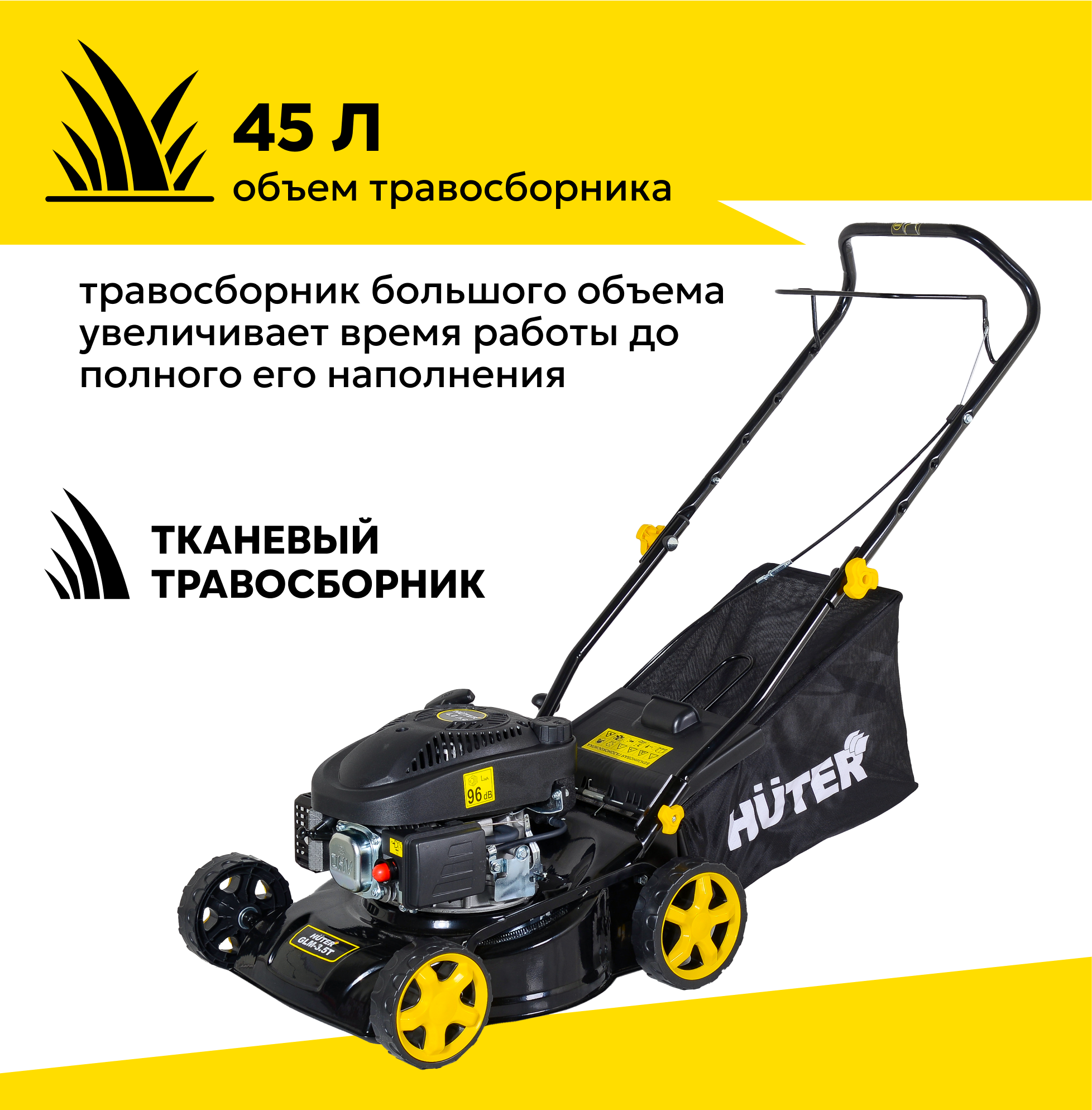 Купить Газонокосилка бензиновая HUTER GLM-3.5T, 4 л. с, ширина скоса 42см, тканевый травосборник
