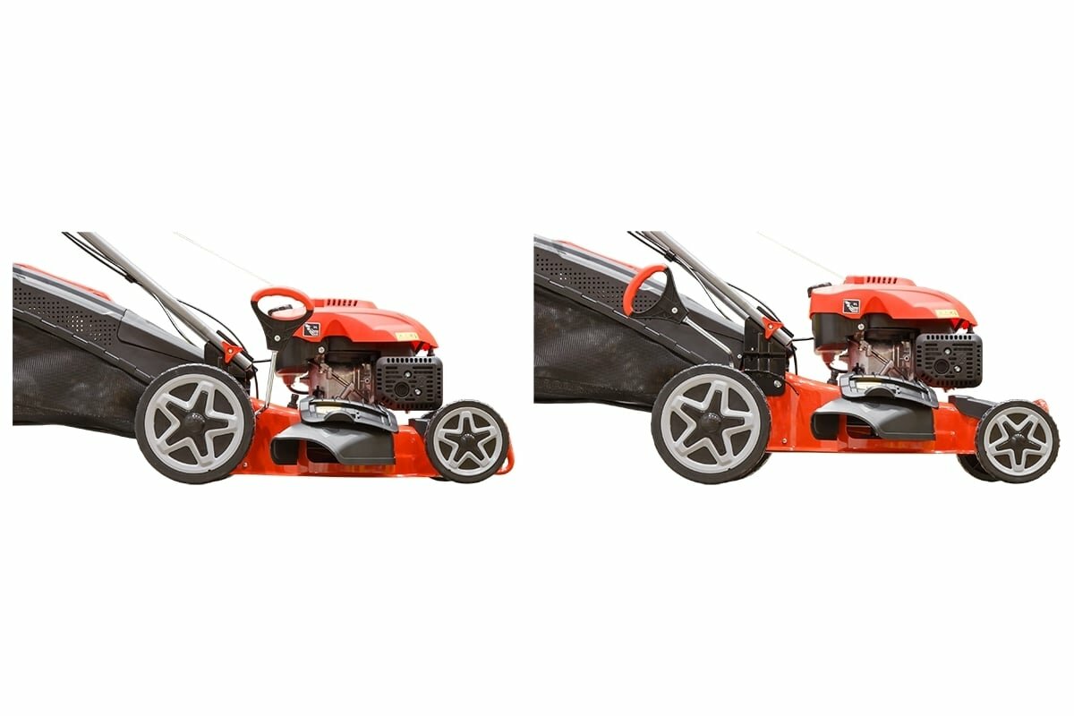 Газонокосилка скашивает хорошо и быстро, удобная в обращении, можно и косой выброс и в пылесборник, высота плавно регулируется сразу одним движением рычага, всё отлично