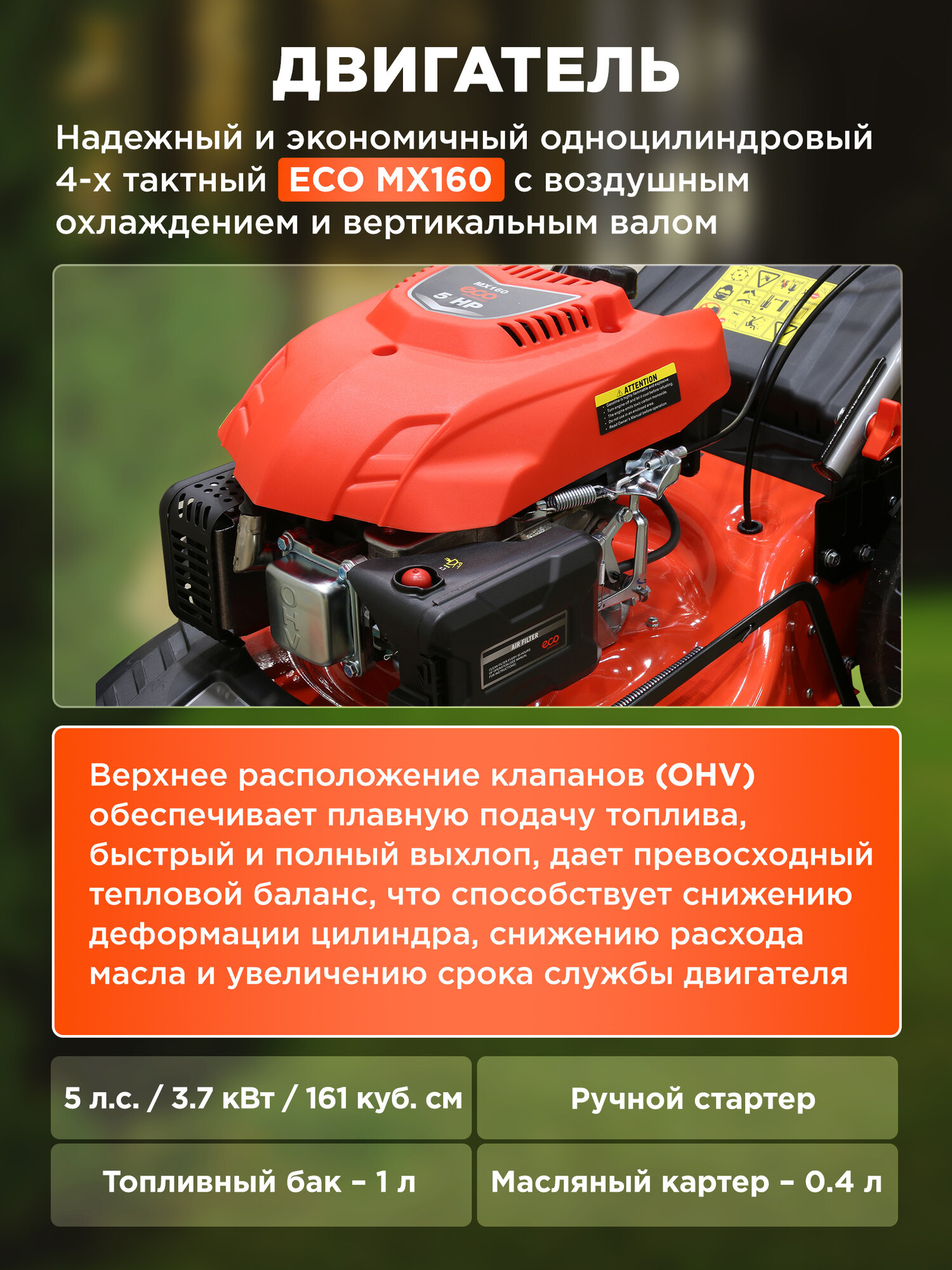 Газонокосилка бензиновая ECO LG-633 самоходная (5.0 л.с., шир. 46 см, самоходная, мульчир., стальн. корпус, травосборник 60 л)