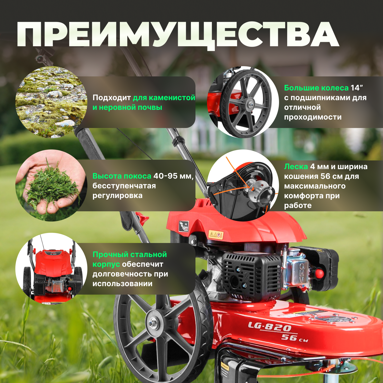 Газонокосилка бензиновая ECO LG-820 ширина обработки 56 см, без травасборника, леска 4 мм (EC1553-7) интересное: