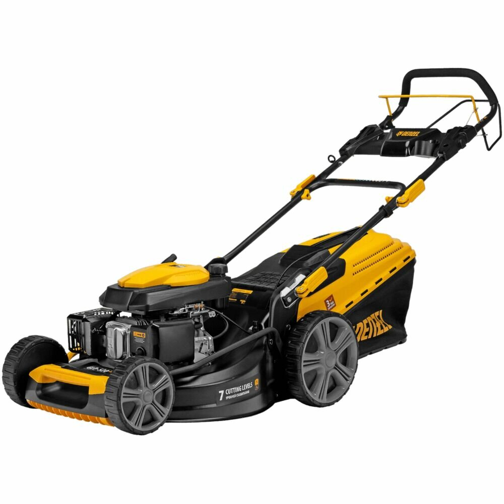 Газонокосилка бензиновая, 196 см3, ширина 52 см, привод, 7 уровней, травосборник 60 л, Denzel