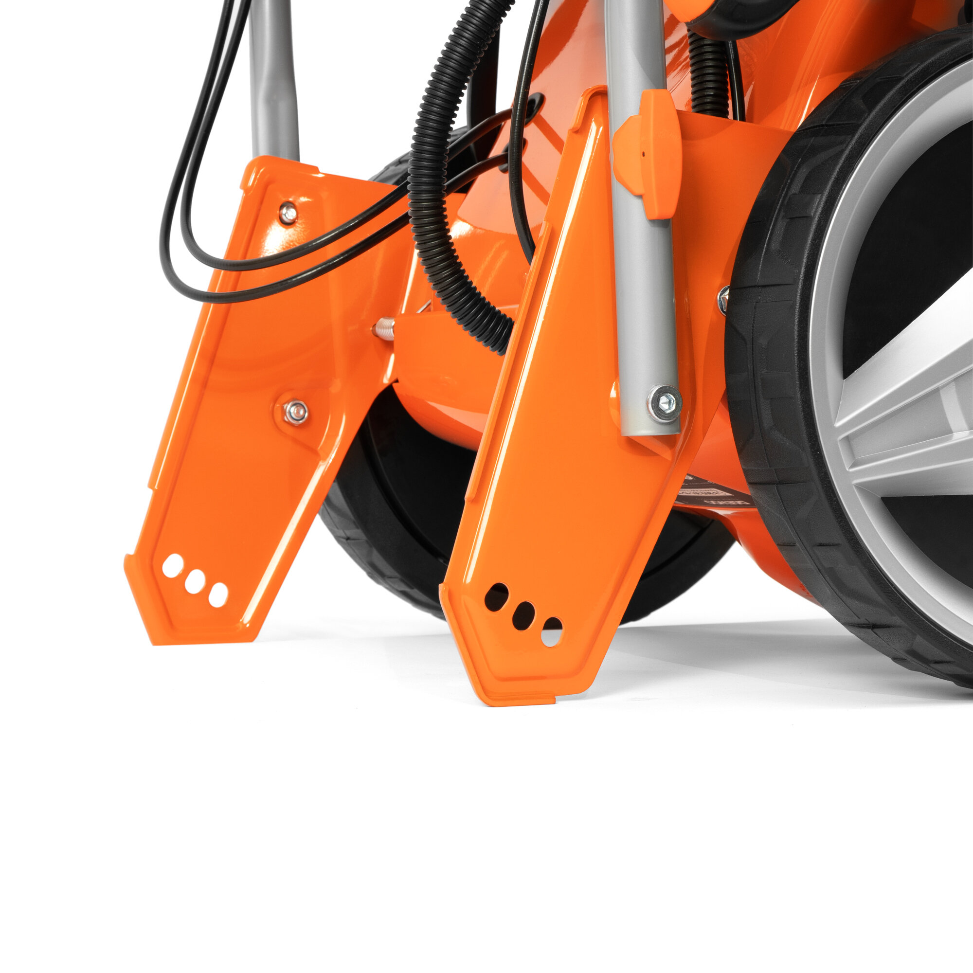 В режиме бокового выброса - кожух бокового выброса очень близко к земле. Нужен очень ровный газон, иначе кожух вырывает |