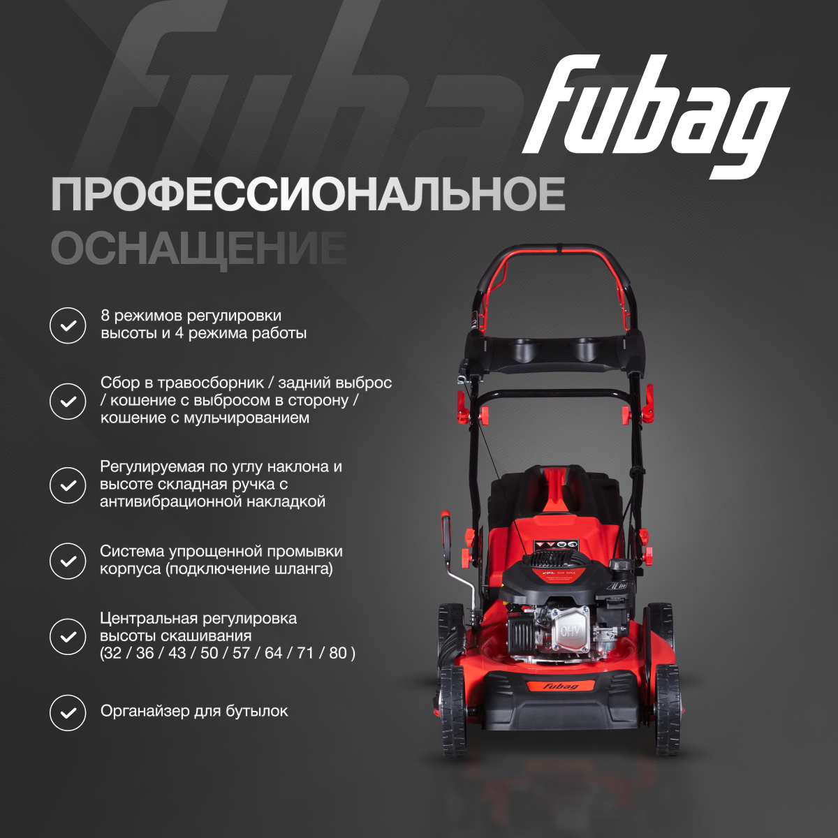 СохранитьГазонокосилка бензиновая самоходная FUBAG FPL 53 SMF с функцией вертикального хранения интересное: