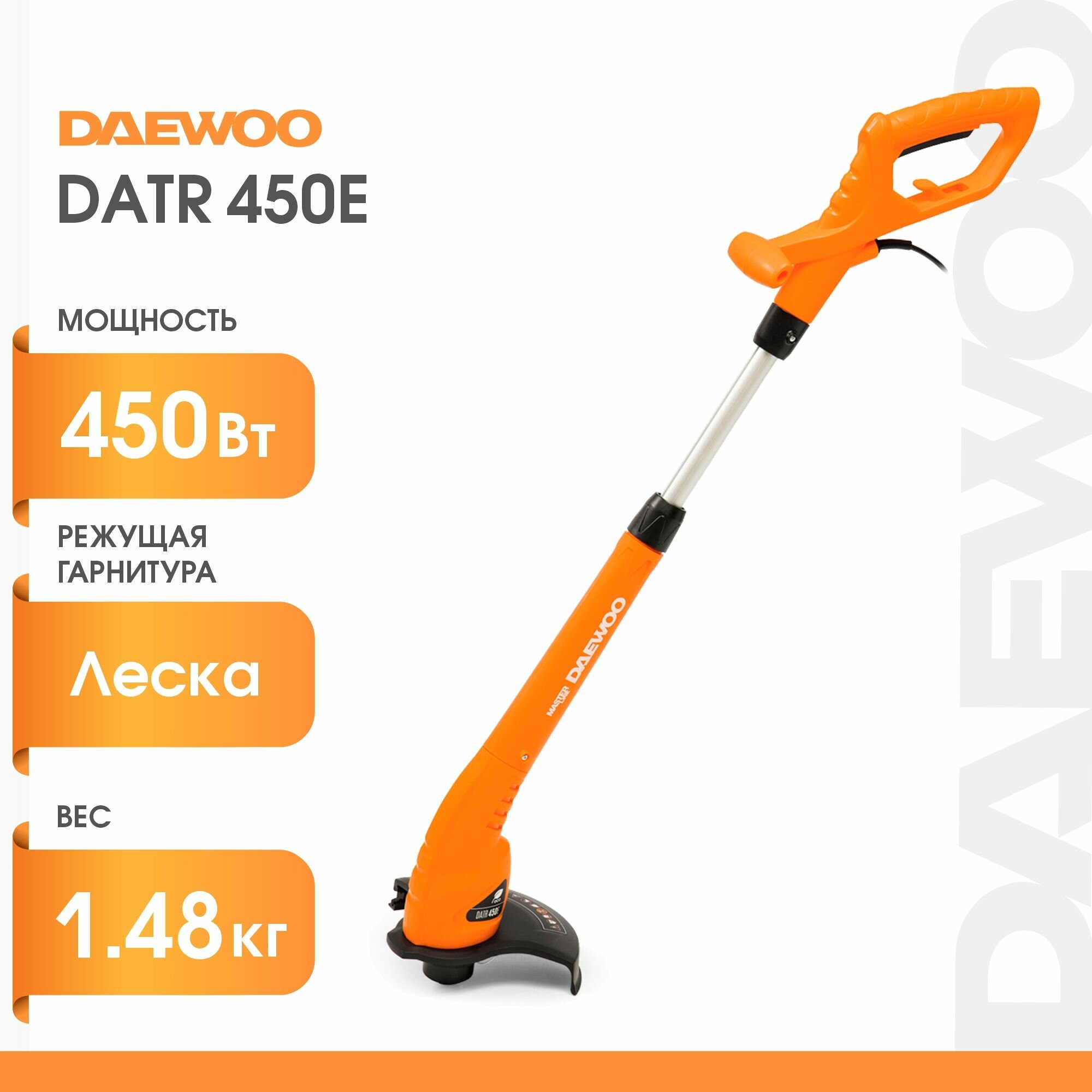 Ниже Вы можете прочитать отзывы на Триммер электрический DAEWOO DATR 450, переносной, ширина скашивания 25см, 450Вт, ознакомится с подробными характеристиками, посмотреть интересные обзоры и фотографии на Триммер электрический DAEWOO DATR 450, переносной, ширина скашивания 25см, 450Вт.