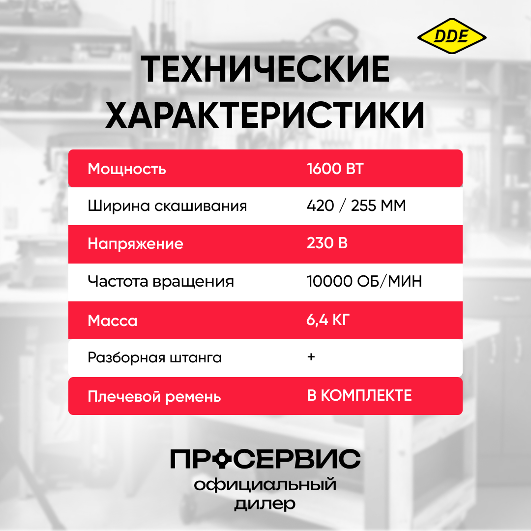 Триммер электрический DDE ET1600RV (1600 Вт верх двиг разъем прям вал ремень +диск велоруль)