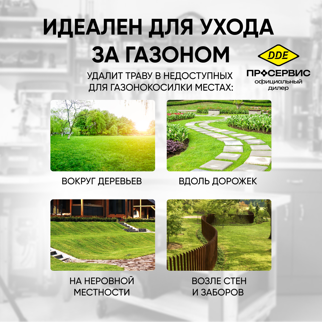 СохранитьЭлектрический триммер DDE ЕТ1600RV (1,6кВт, леска-нож) садовая техника для дачи, косилка для газона интересное: