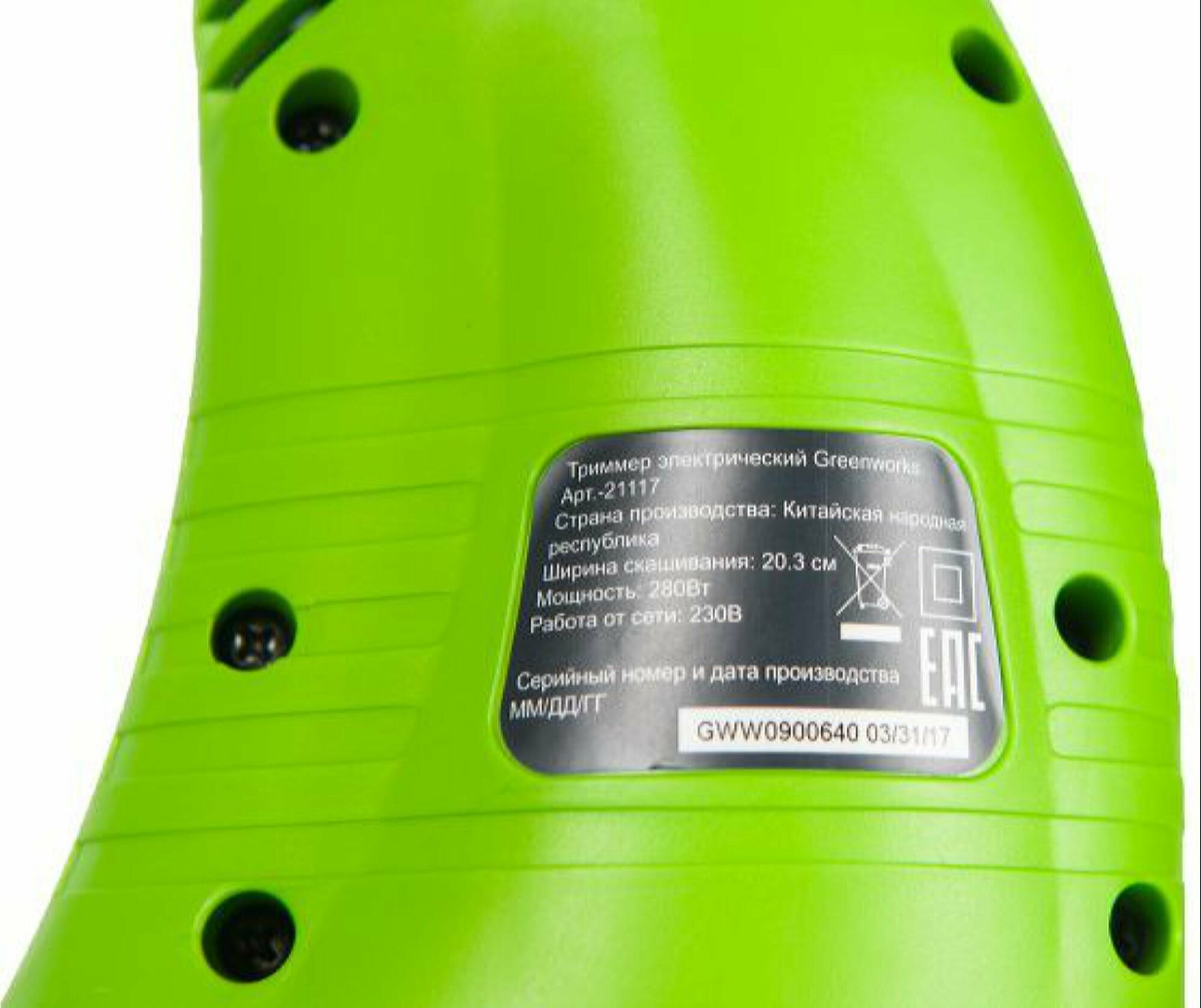 Триммер электрический Greenworks Арт. 21117, 280W, 20 см