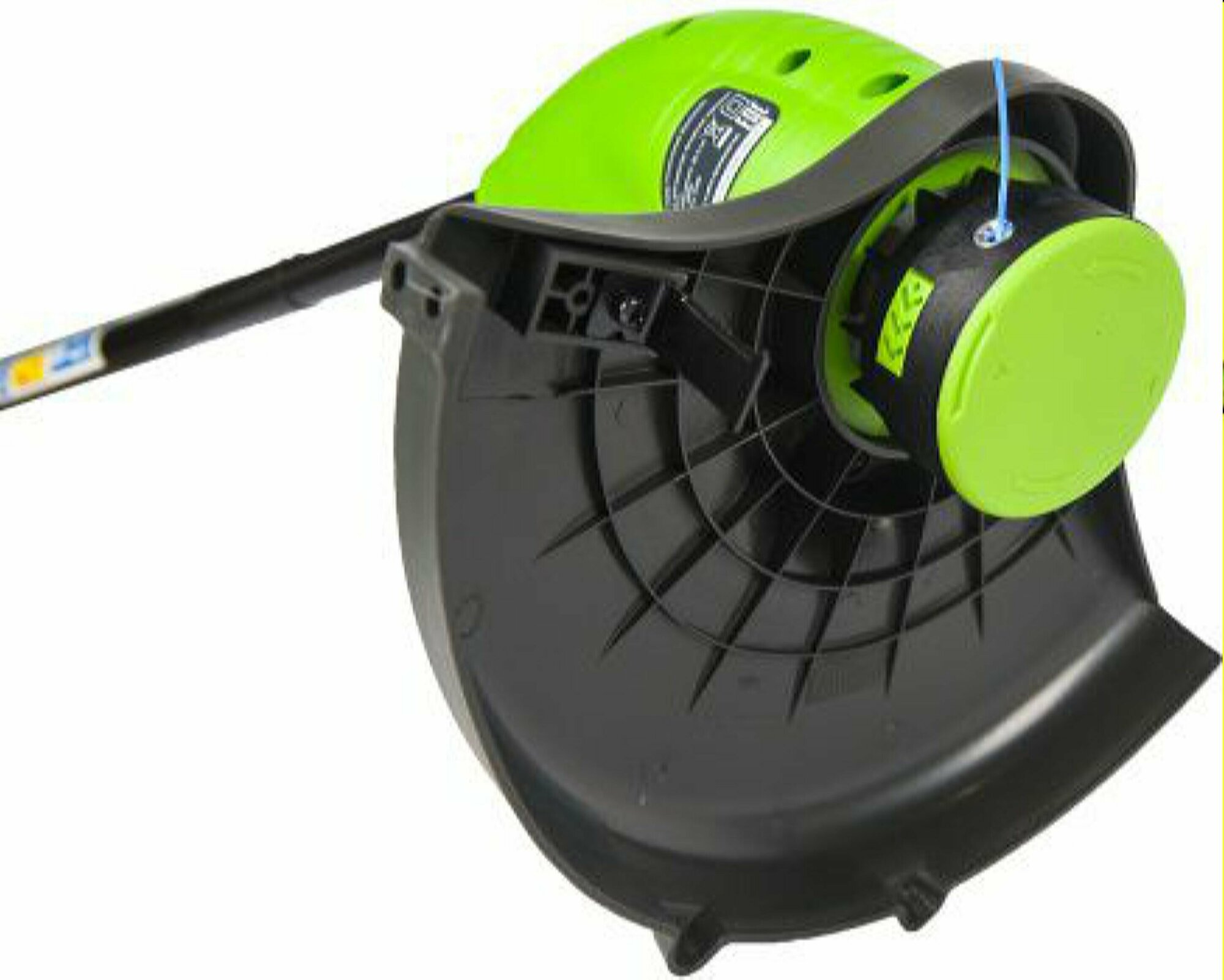 | Минусы: | Слабоват. Леска одним хвостиком. Снизу видна обмотка статора, если перевернуть. Защиты нет и будет попадать трава (предположение).. Леска тонкая, быстро стирается. добавлять руками через спецкнопку на катушке. Деликатный инструмент для сверхлегких задач |