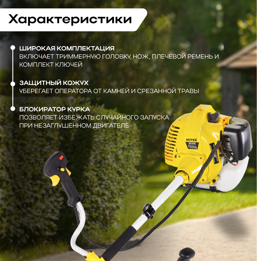 Триммер Huter GGT-443S, мощность 1500 Вт, ширина скашивания 46см интересное: