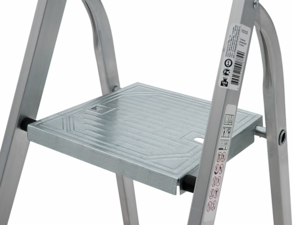 Стремянка алюминиевая Новая Высота 4 ступени, высота площадки 0,82 м, дуга безопасности 0,6 м, площадка 26х26 см, до 150 кг, вес 3,5 кг