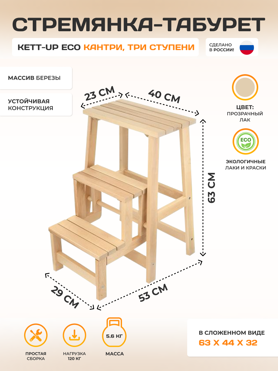 Стремянка-табурет KETT-UP ECO кантри, KU165.3, три ступени, цвет натуральный, лак интересное: