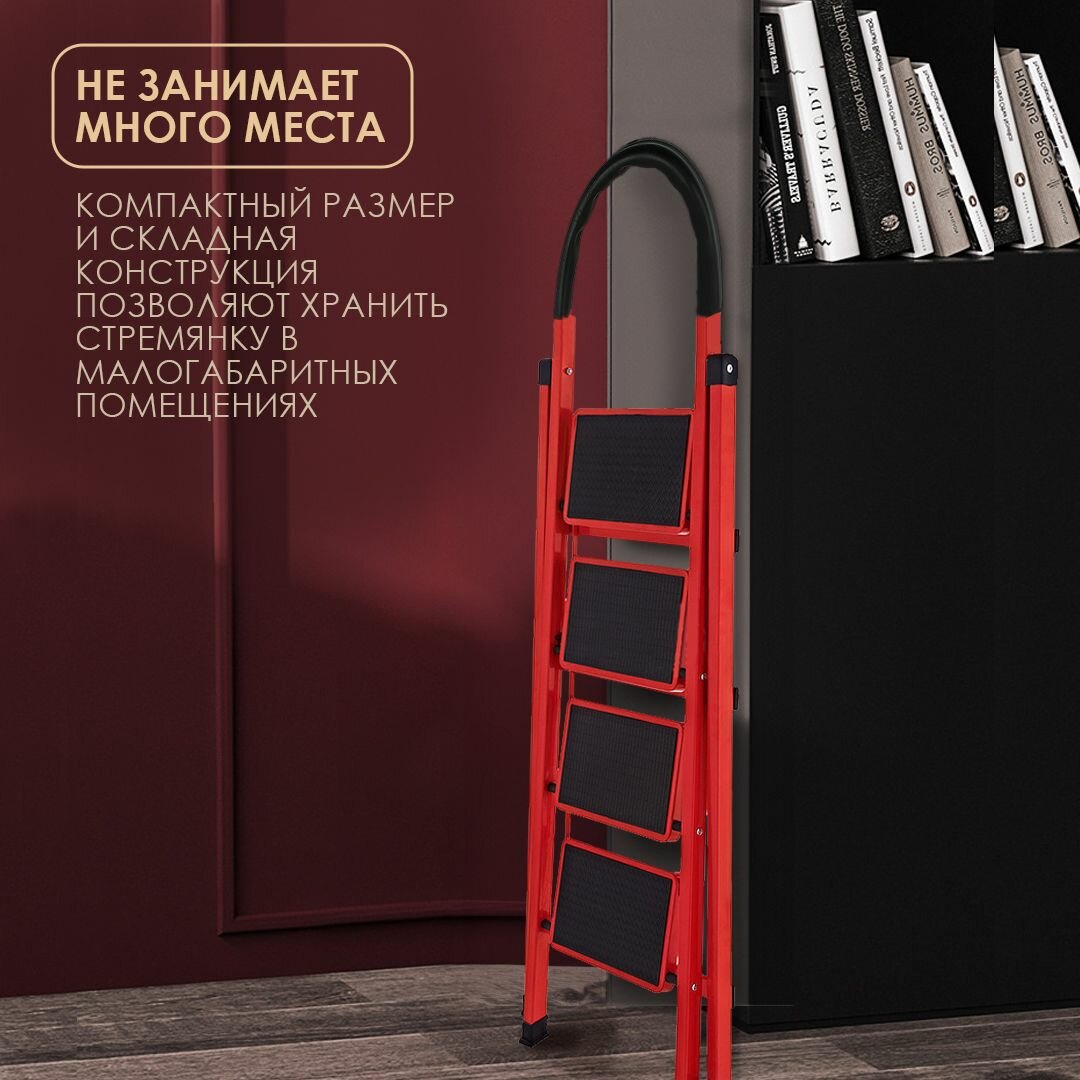 Стремянка 4 ступени, лестница складная, стальная, антискользящая для дома, кухни, садовая 120х60х40 широкие ступени