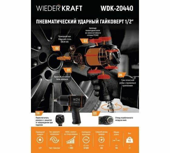 Пневматический ударный гайковерт WIEDERKRAFT WDK-20440