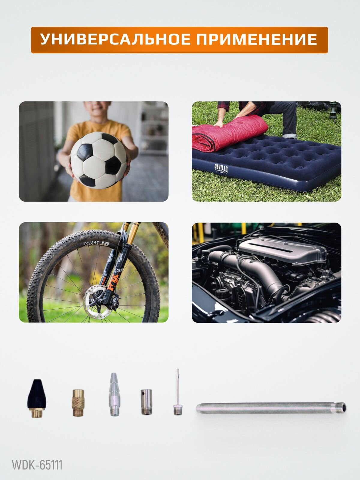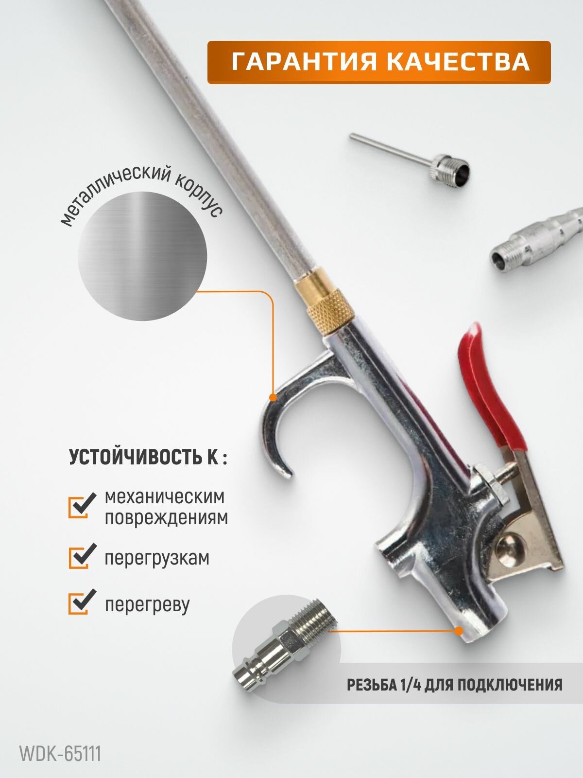СохранитьПневматический обдувочный пистолет с набором аксессуаров для накачки мячей, колес и обдувки деталей WIEDERKRAFT WDK-65111 интересное: