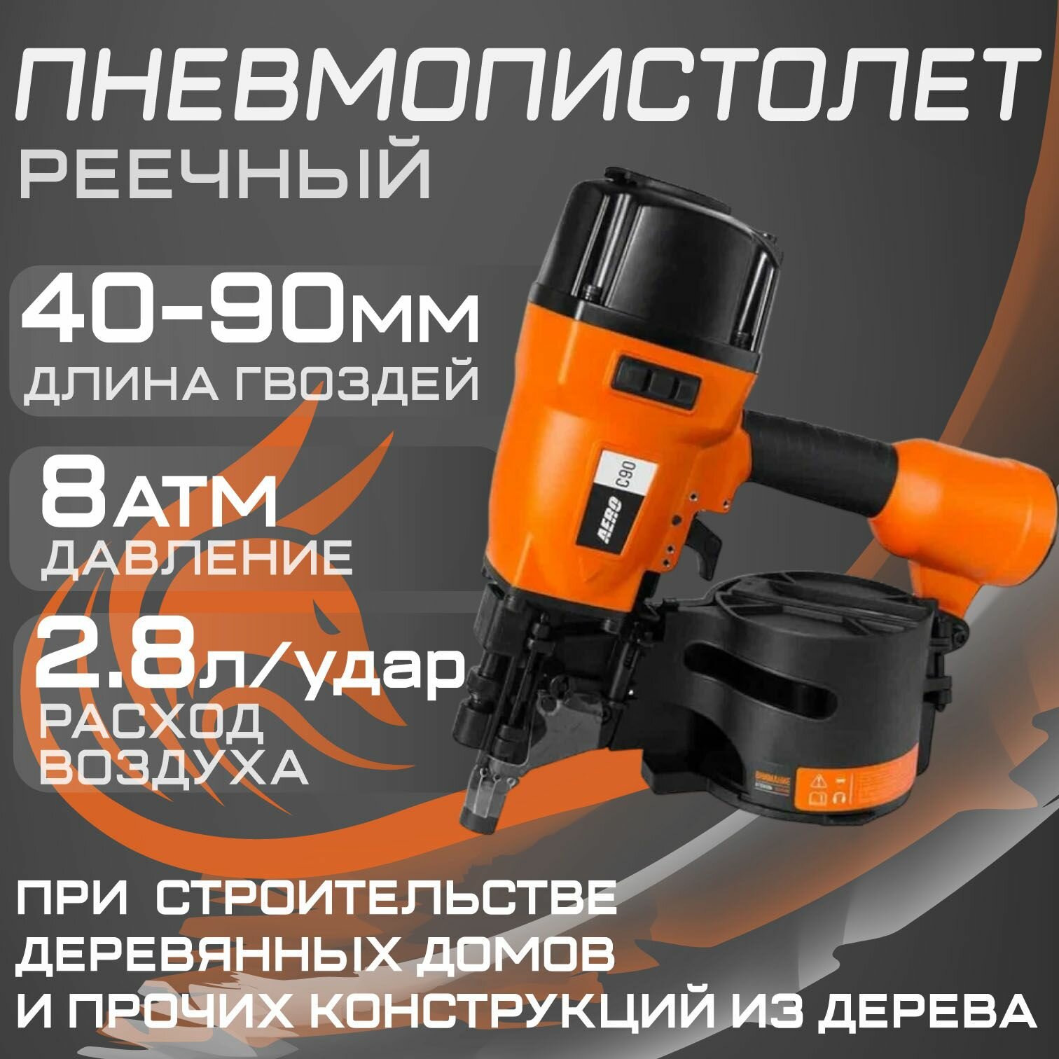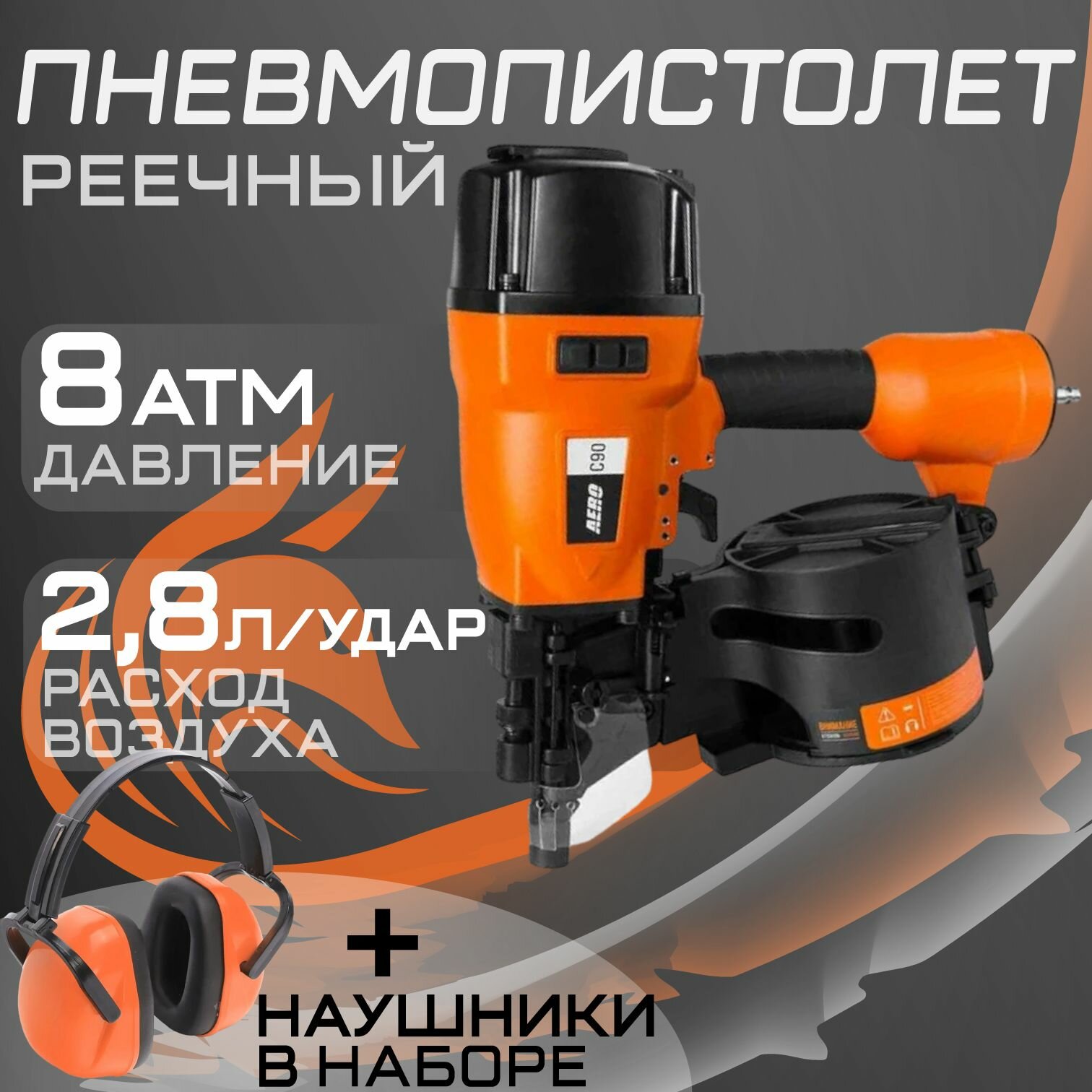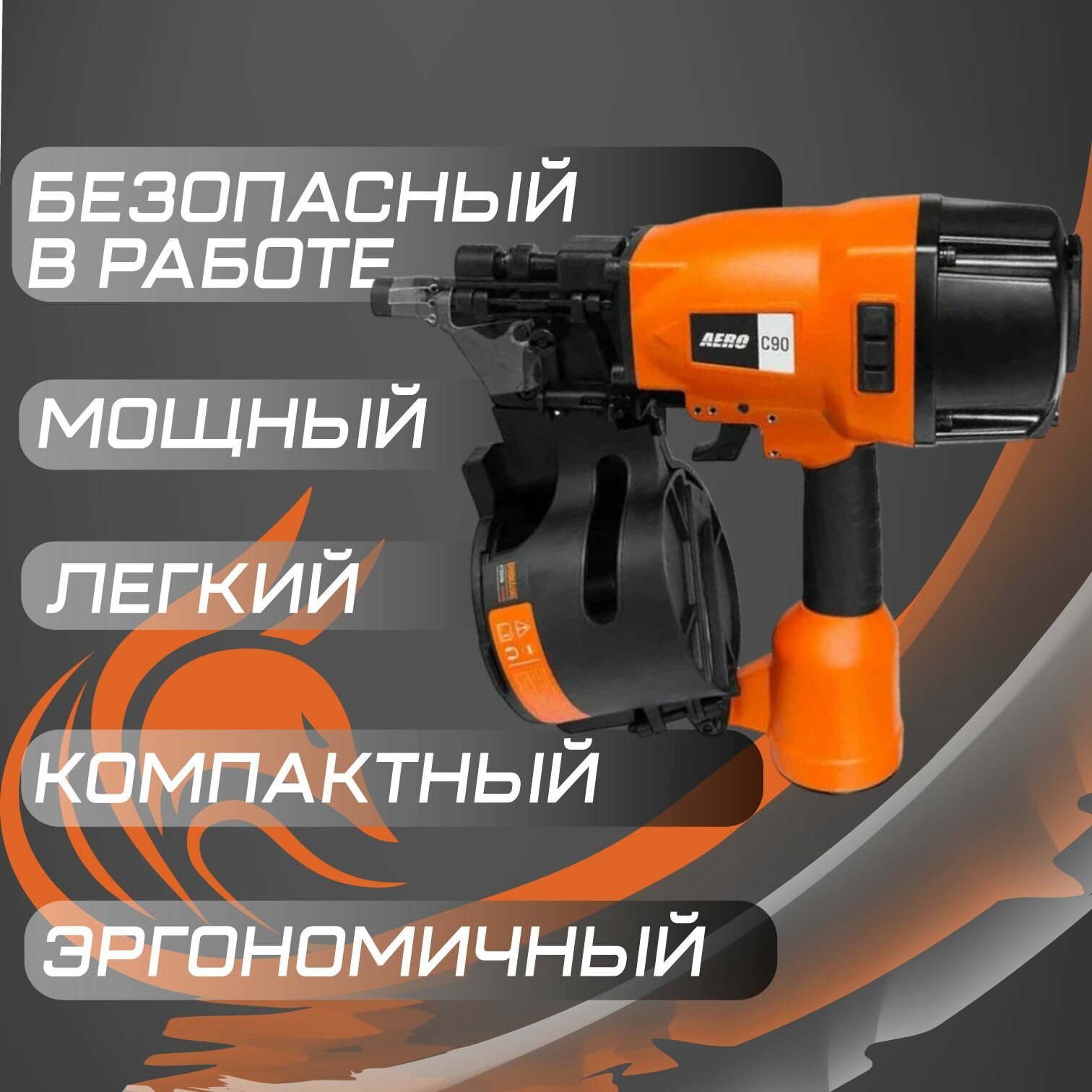 Пневматический гвоздезабивной пистолет, барабанный нейлер AERO C90