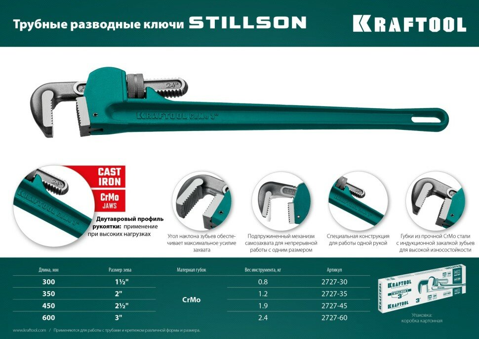 KRAFTOOL STILLSON, 2″, трубный разводной ключ