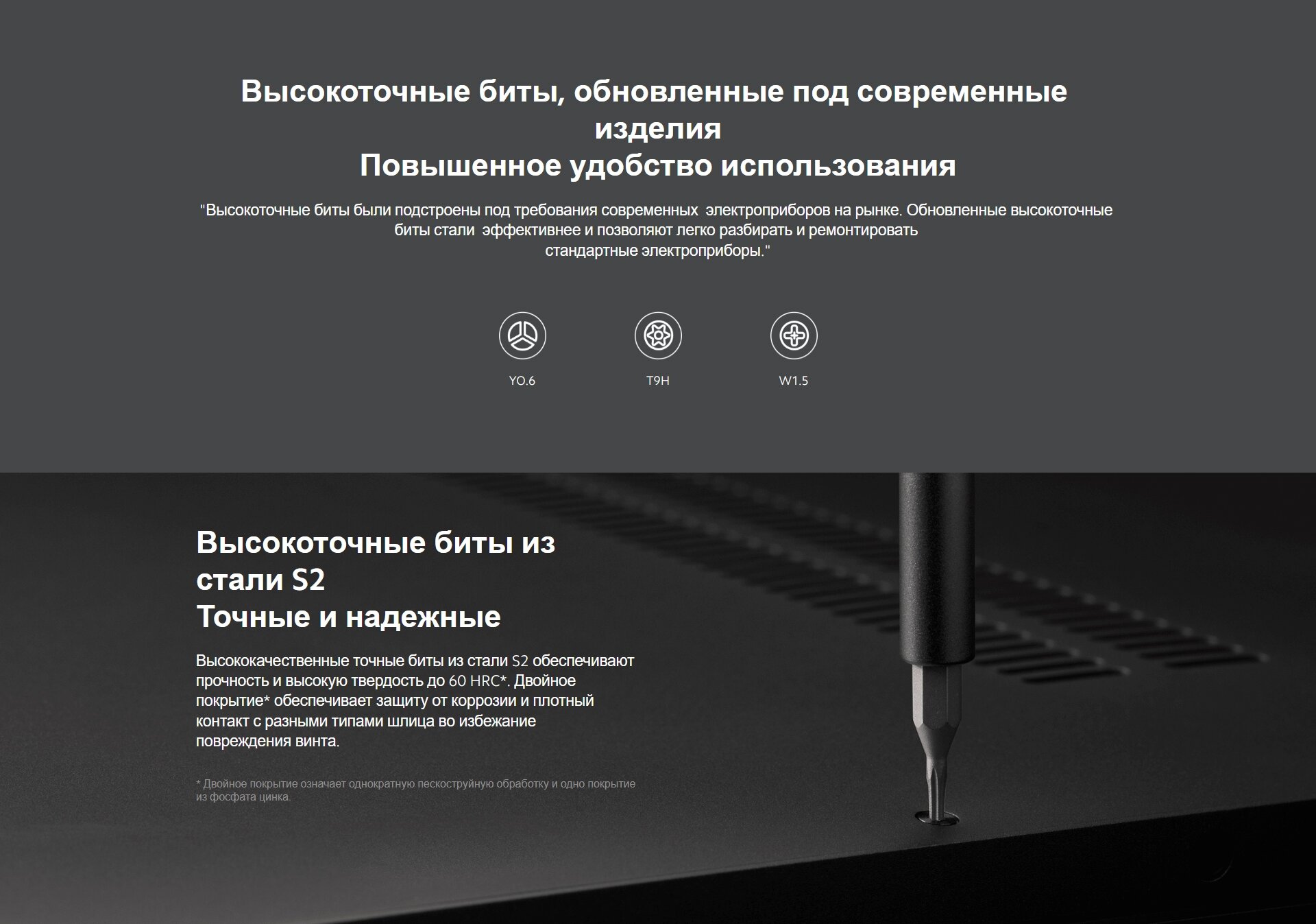 | Тип наконечника | Torx / tri-point (Y) / крестообразный / spanner (U) / шестиугольный (H) / Pentalobe / прямой |