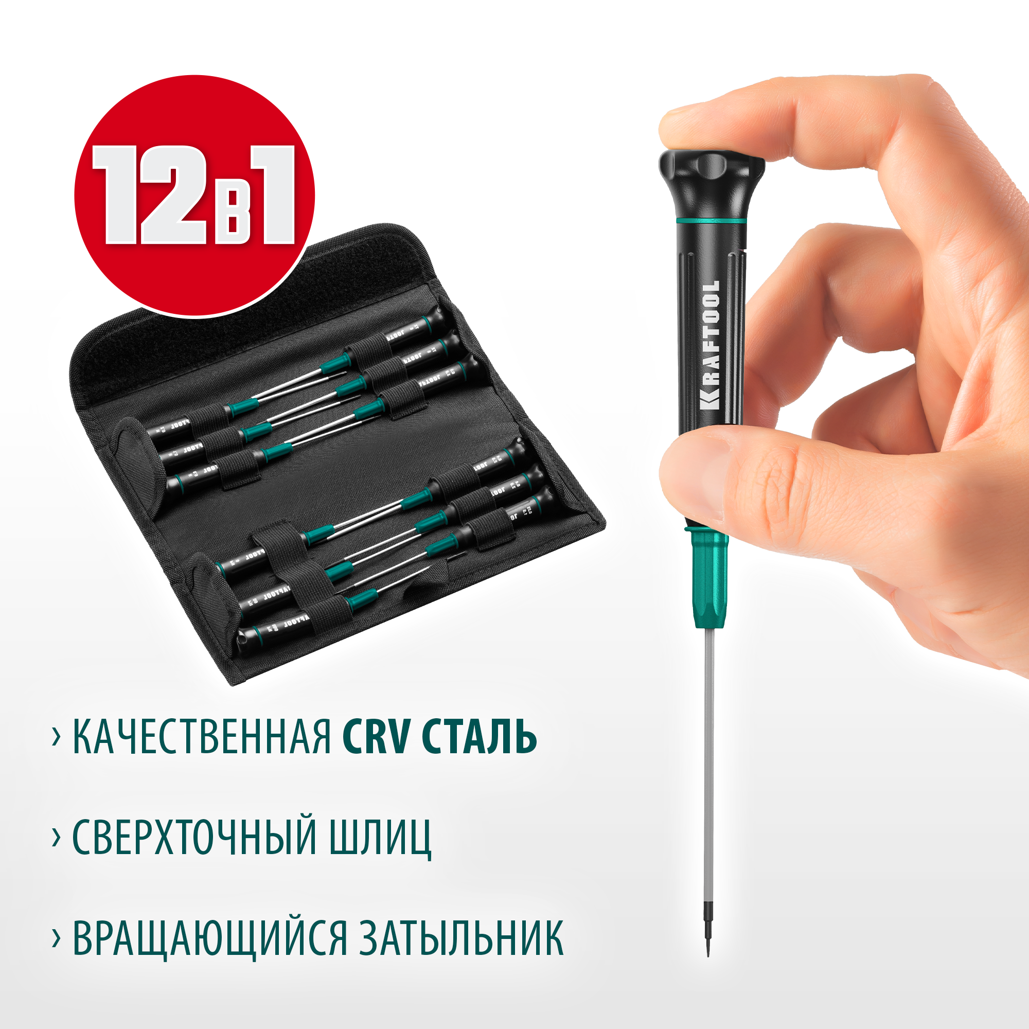KRAFTOOL Precision 12 для точных работ 12 предм., Набор отверток (25689)