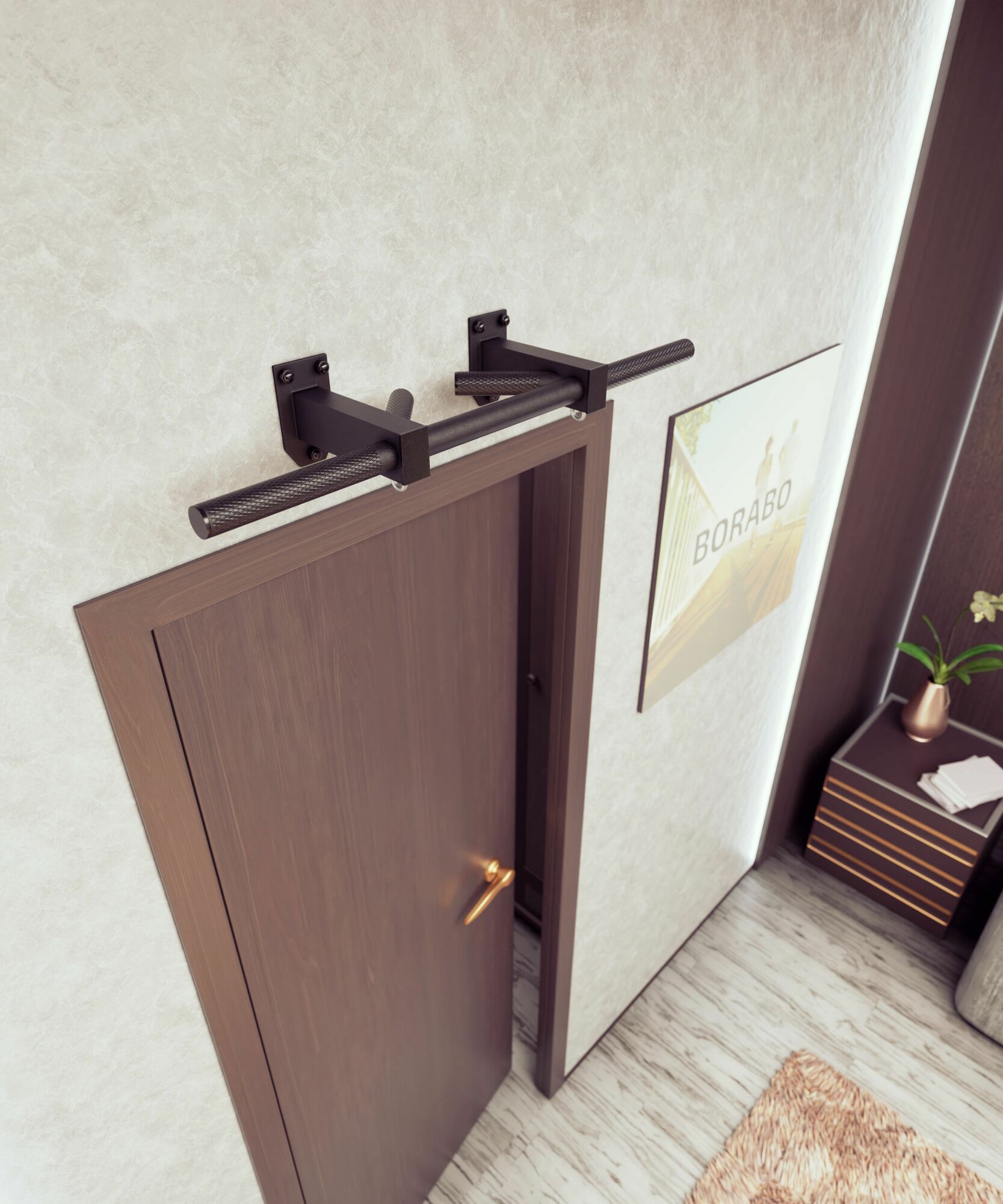 Купить Турник настенный, наддверный "Бизон"BLACK - стальное рифление