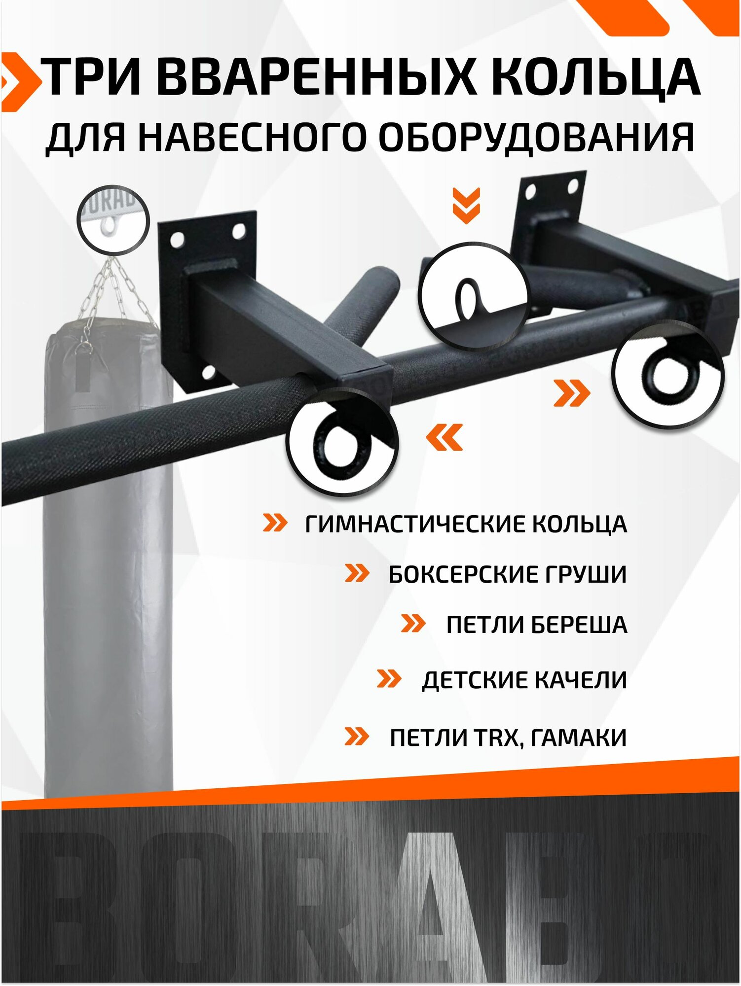 | Плюсы: | Прочный, удобные мягкие ручки, четко вписался над дверным проемом, также имеются литые кольца для качелей или груши, качество на высшем уровне, в комплекте имеется подробная инструкция и два комплекта дюбилей для разных стен. |