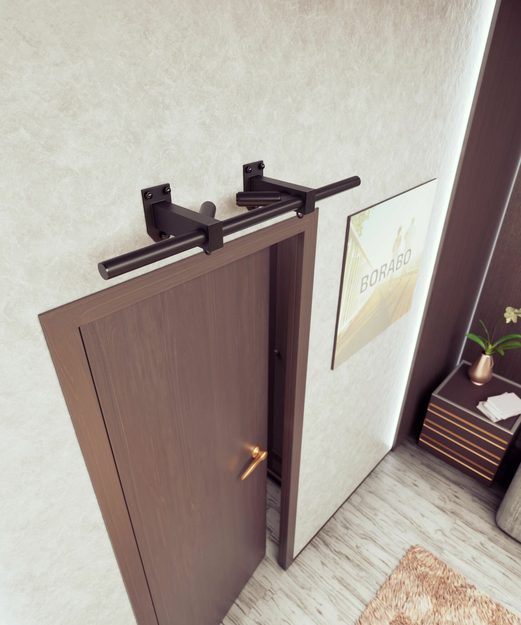 Турник настенный, наддверный "Бизон"BLACK - стальное рифление