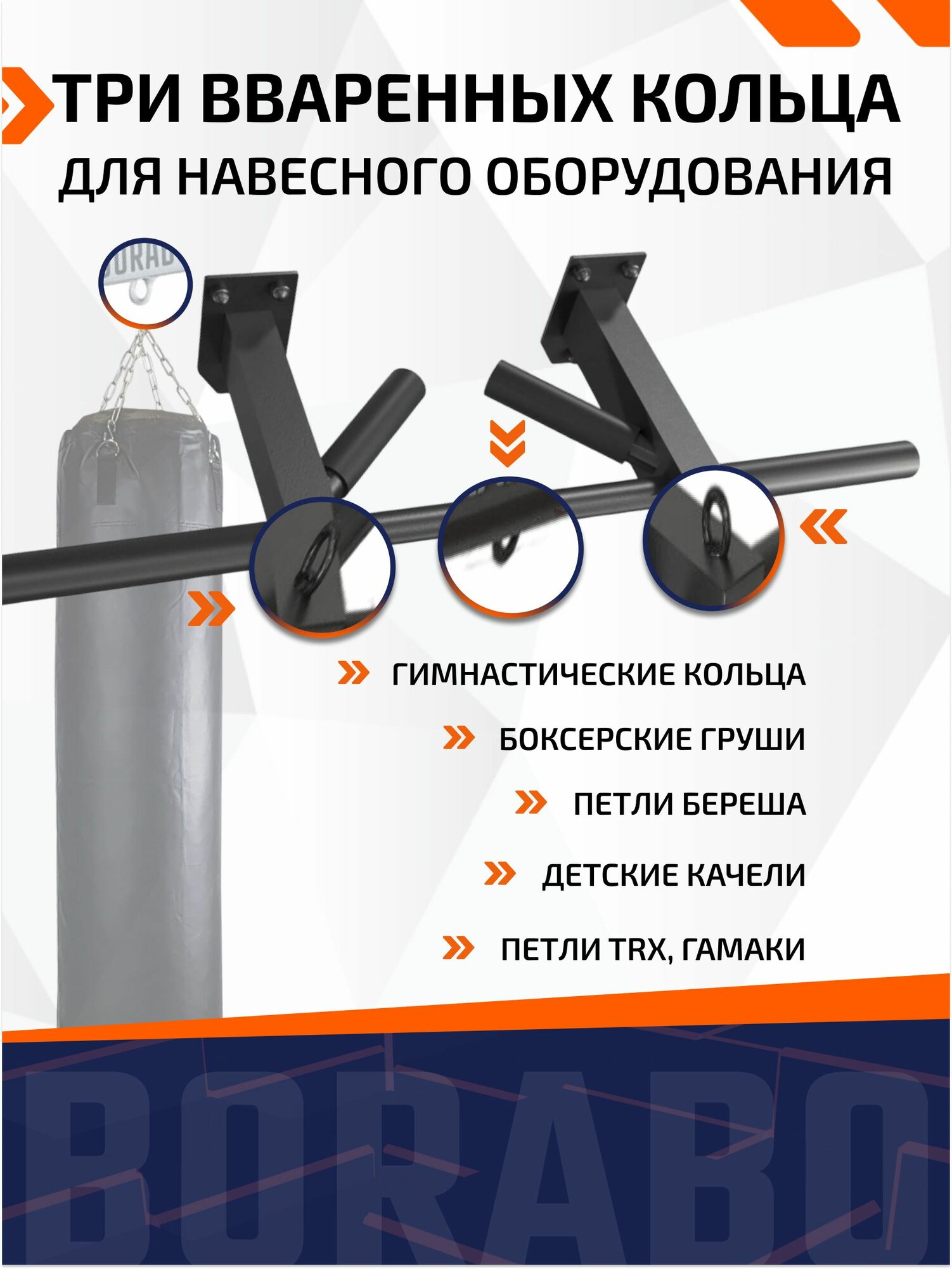 | Плюсы: | Прочный, удобные мягкие ручки, четко вписался над дверным проемом, также имеются литые кольца для качелей или груши, качество на высшем уровне, в комплекте имеется подробная инструкция и два комплекта дюбилей для разных стен. |