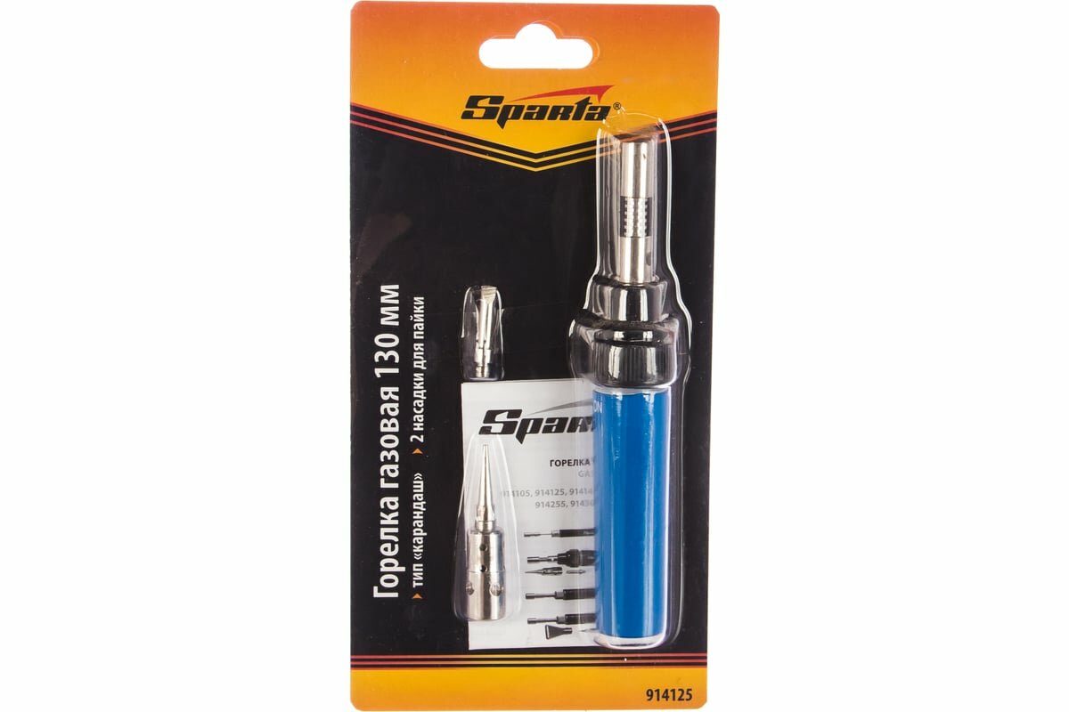Горелка газовая Sparta 914125, тип "Карандаш", 2 насадки для пайки, 130 мм, бутан./В упаковке шт: 1